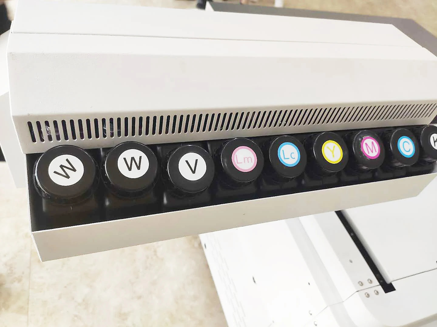 3 heads:C/M/Y/K/LC/LM + White + Varnish