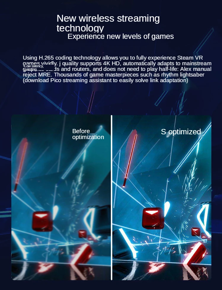 Connect to a PC through a customized DP cable and experience 4K resolution SteamVR content