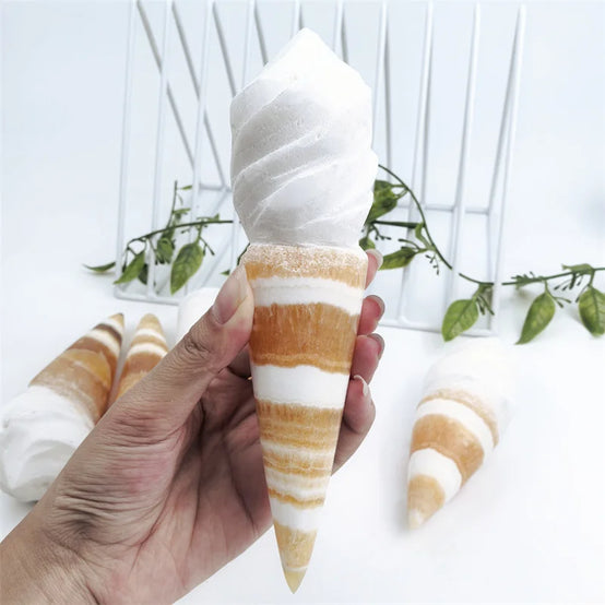 New Product Polished Healing Stone Crystal Craft Yellow Calcite Ice Cream Statues For Gift