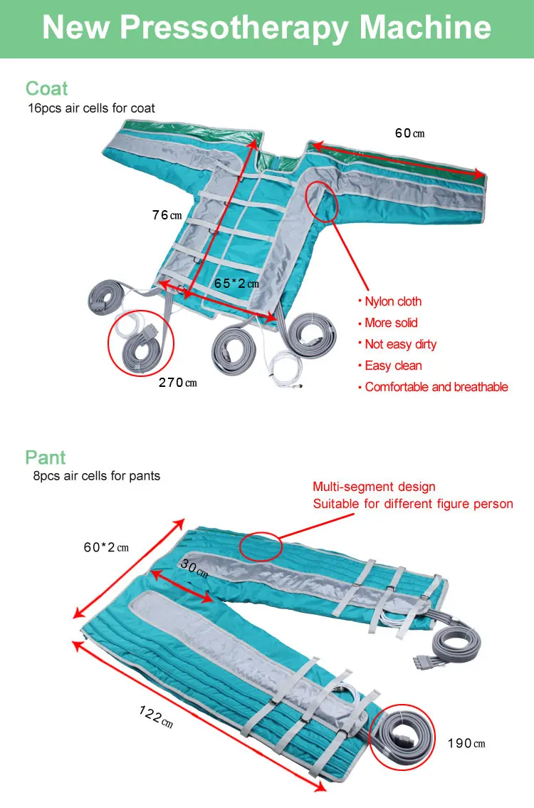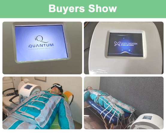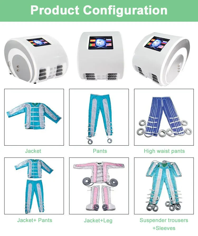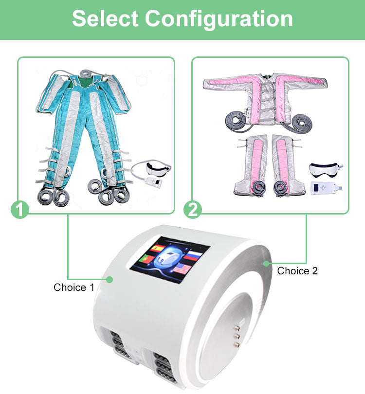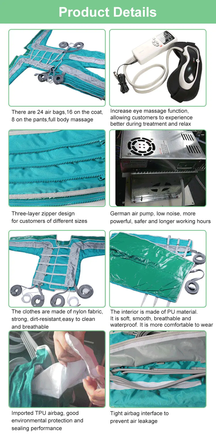 First,put on the special cloth; Second,put on the pressotherapy cloth; Third,put on the massage glasses;