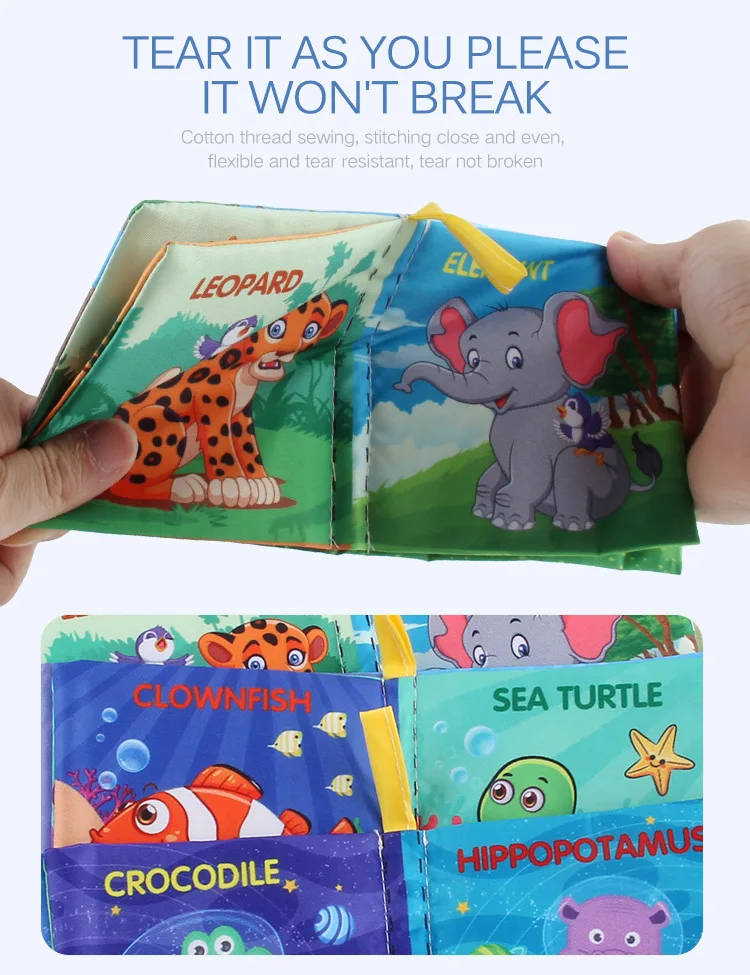 New Stereo Baby Cloth Book Animal World English Palm Book Baby Cloth Book Early Education Cognitive Toy