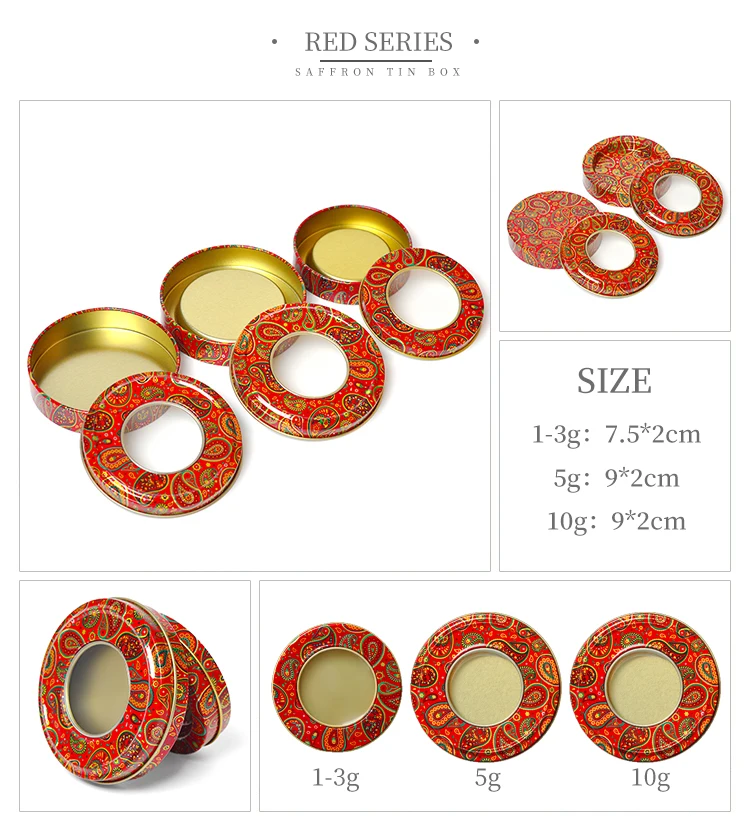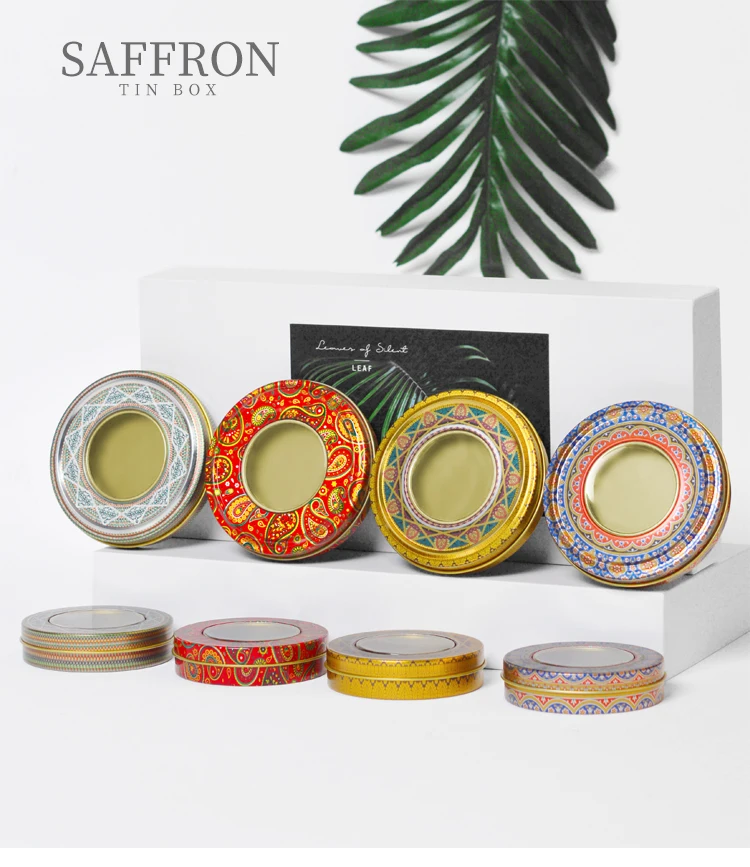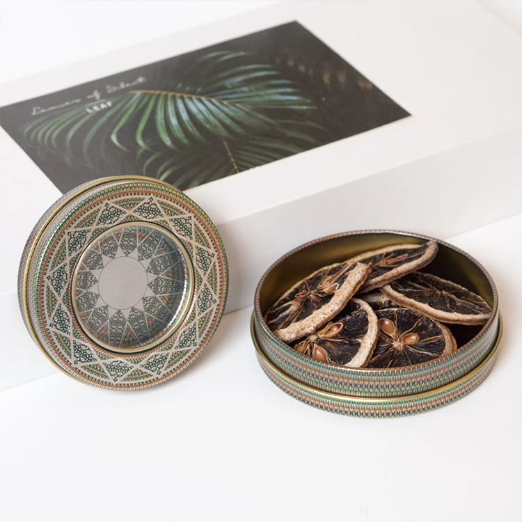 New Styles Eco-Friendly Azafran Packaging Custom Logo Round Incense Empty Tin Packaging Boxes