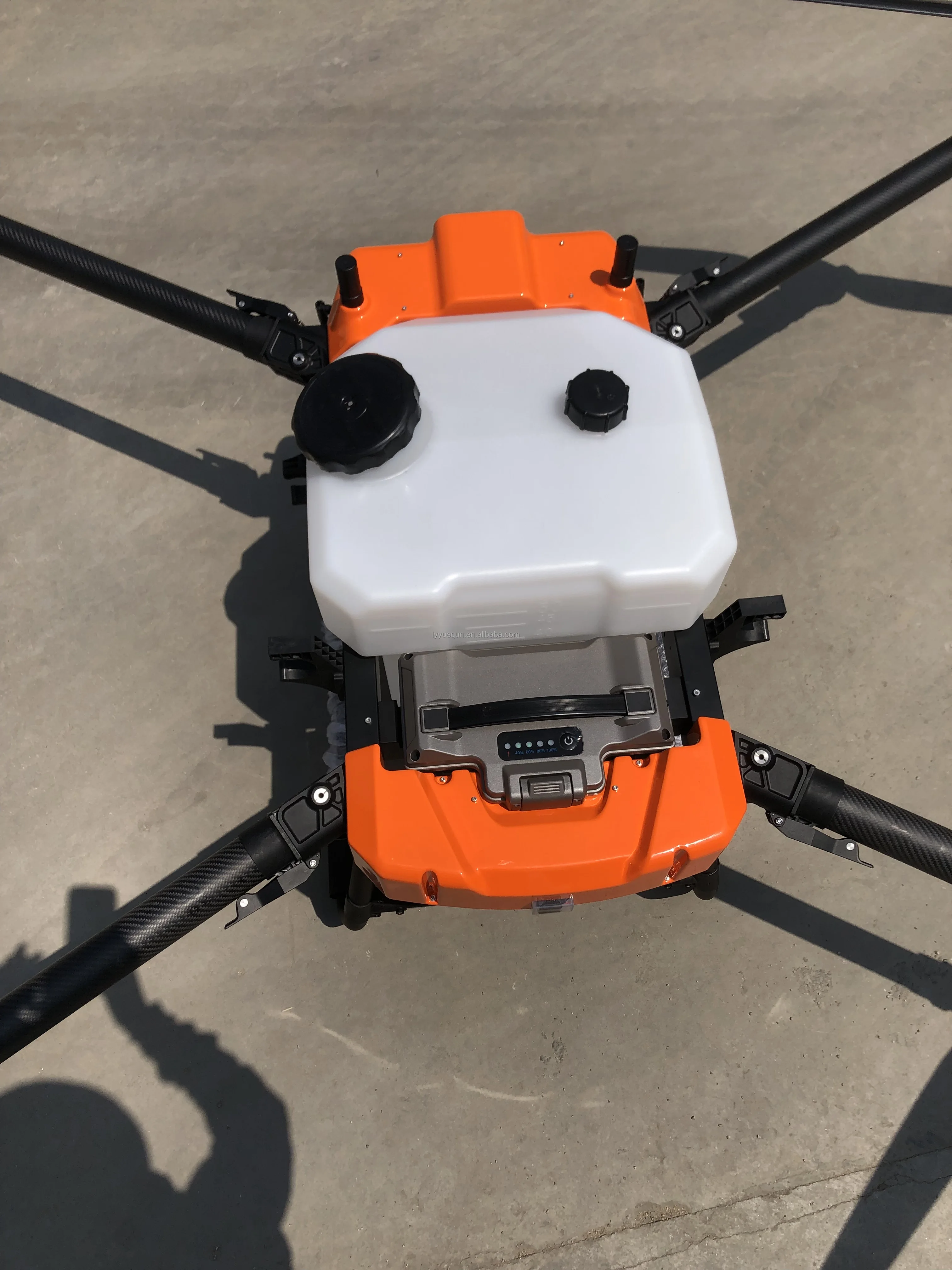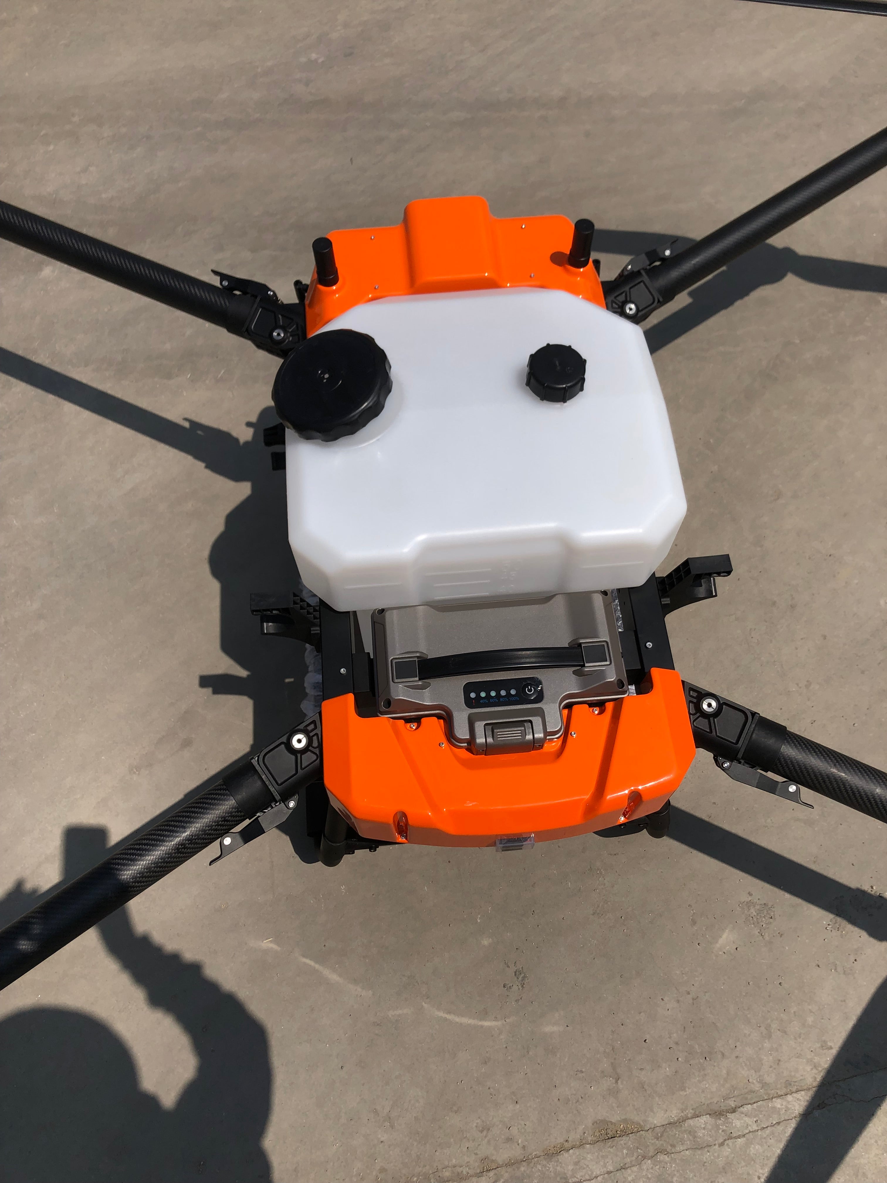 1. All aviation aluminum main frame, which reduces the dead weight and has high strength and impact resistance 2. The core components are closed to prevent dust from entering and corrosion of chemical-resistant fertilizers 3.New design plug-in battery, third-generation high-capacity smart battery, quickly charging just only about 15 minutes, two batteries and 1 charger are enough for non-stop daily operation.