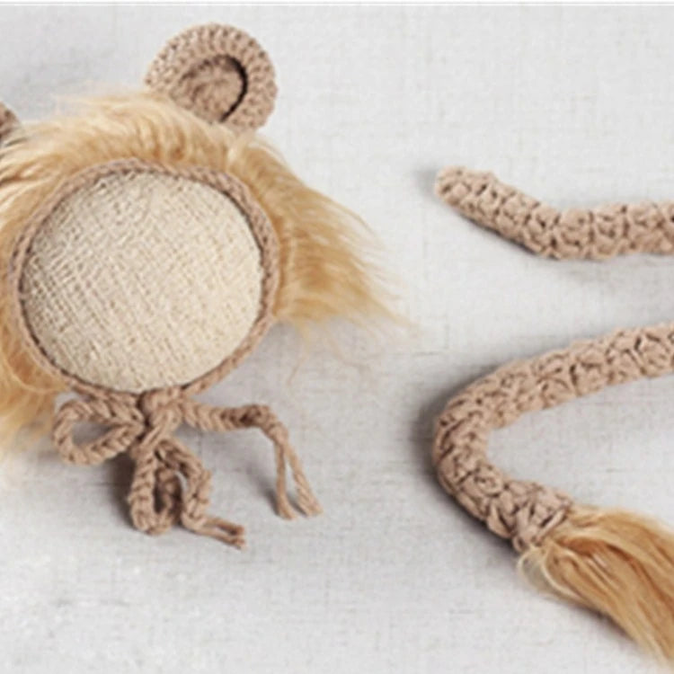 Newborn Photography Little Lion Wool Cartoon Hat and Tail Props For 0-2 Month Lion newborn photography clothing