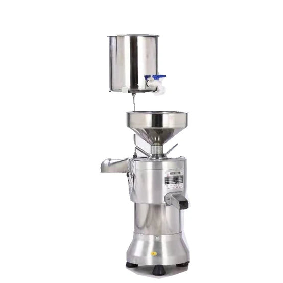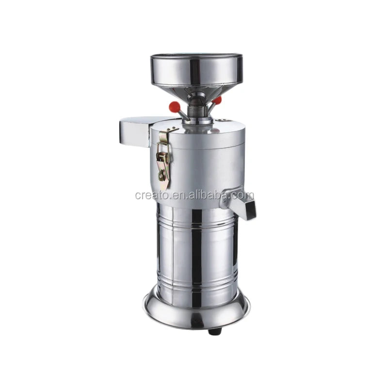 It using the high speed motor to power the grinding wheel and the support of filter screen to make the soya milk.