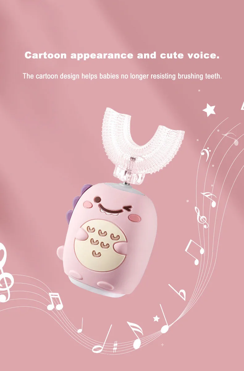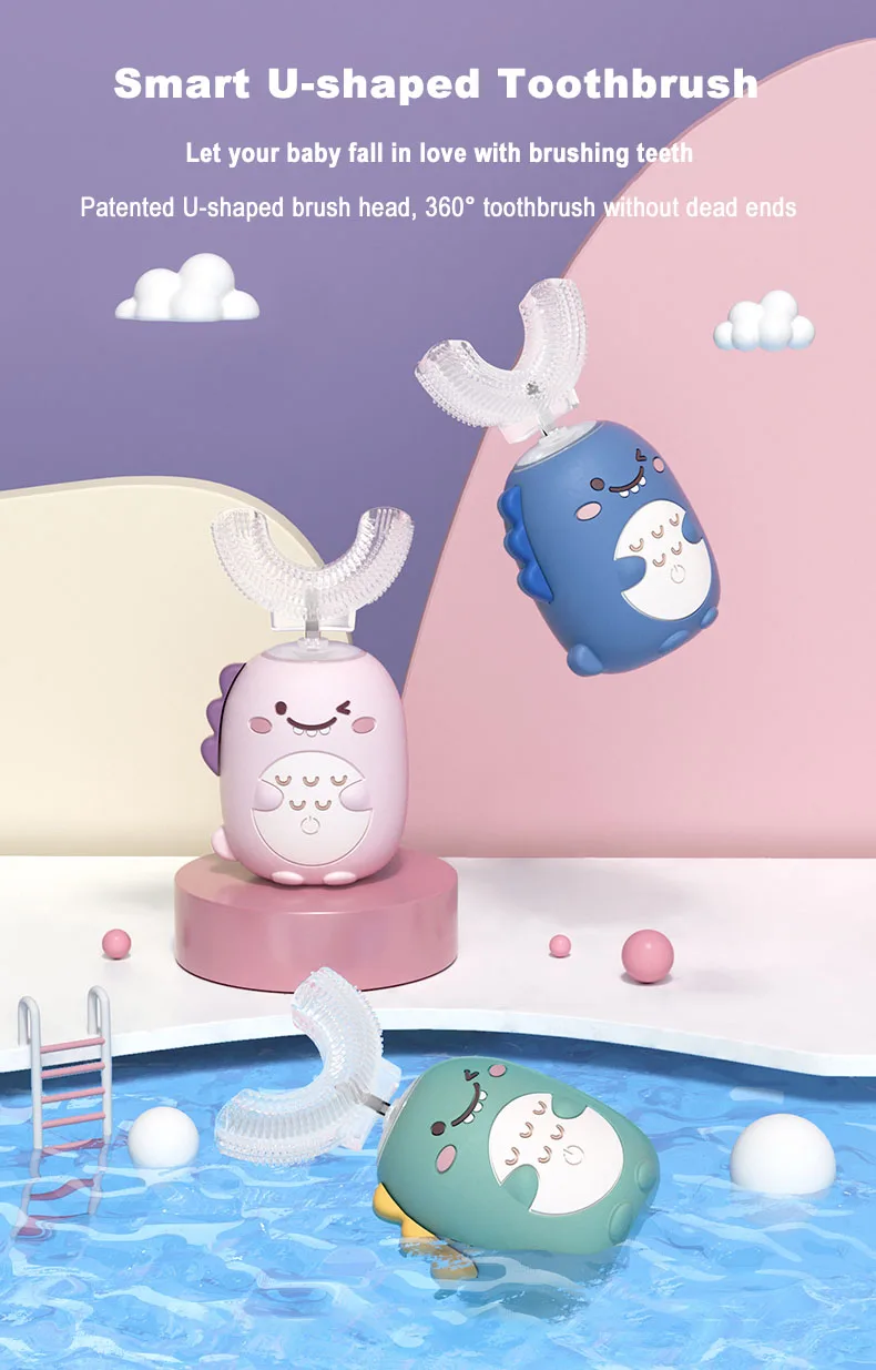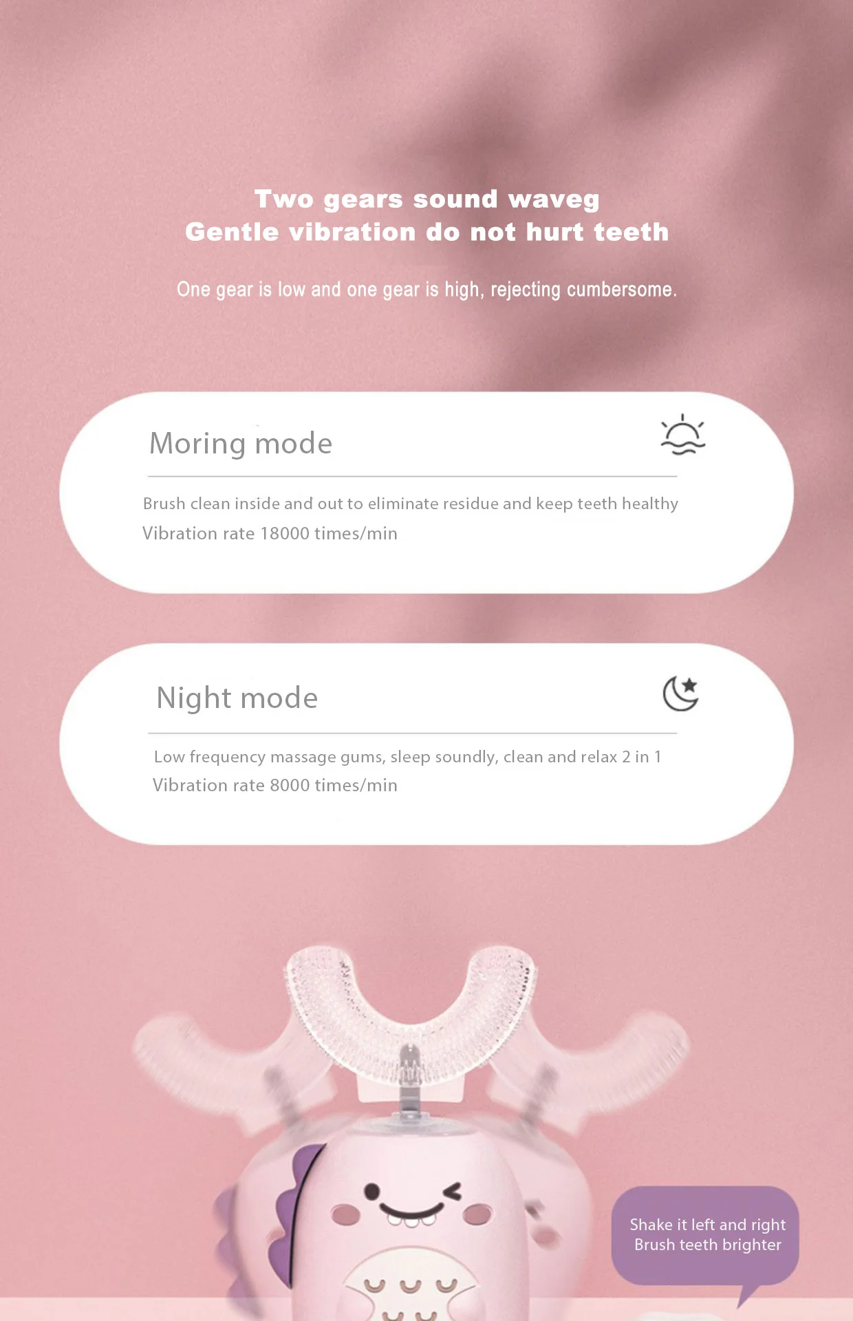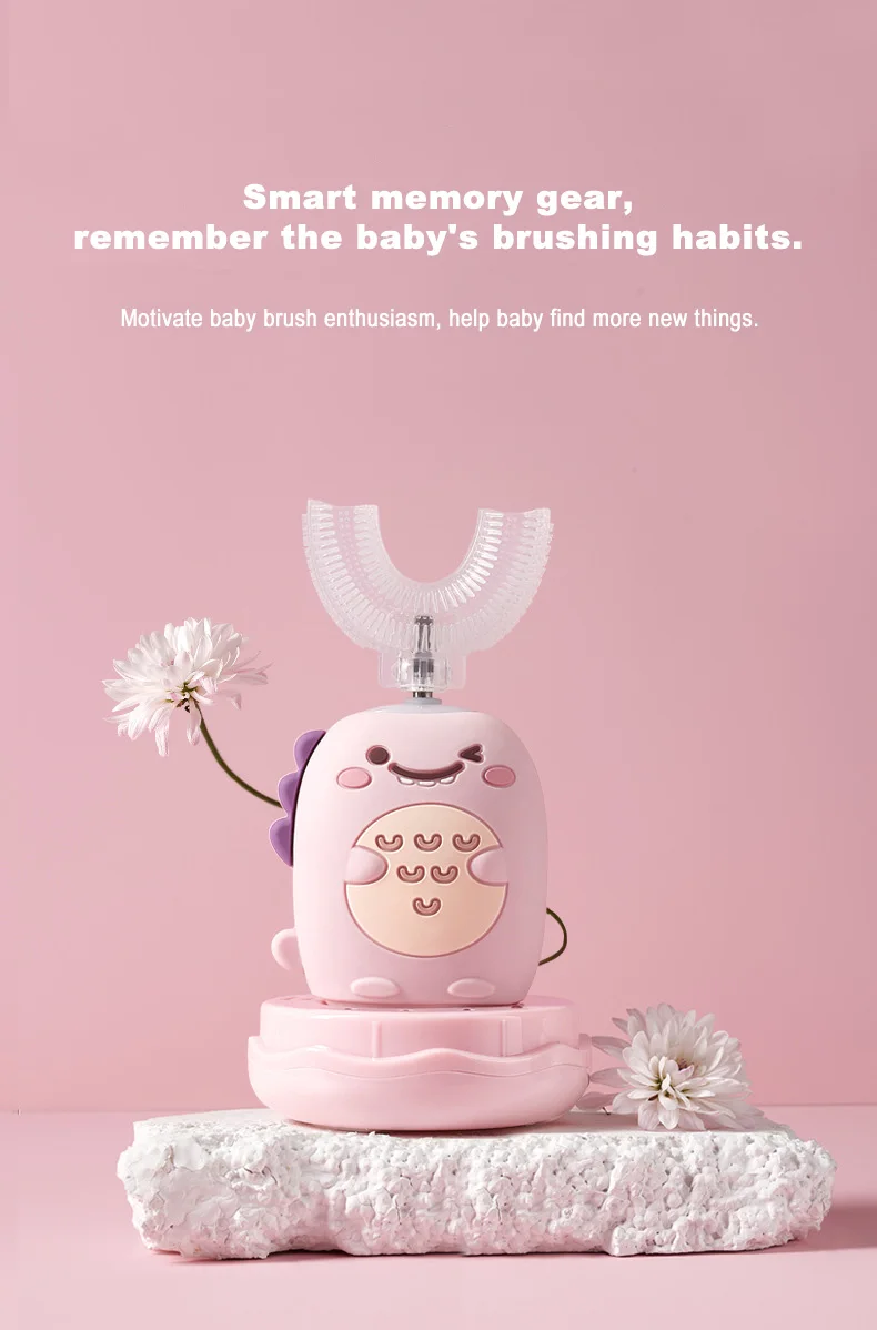 NOKI New auto u shape 360 degrees children kids baby smart ultra soft silicone brush head sonic u-shaped electric toothbrush
