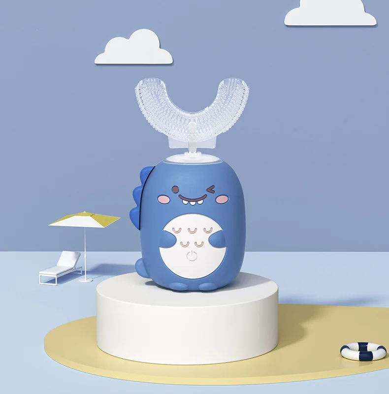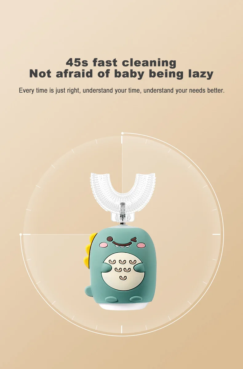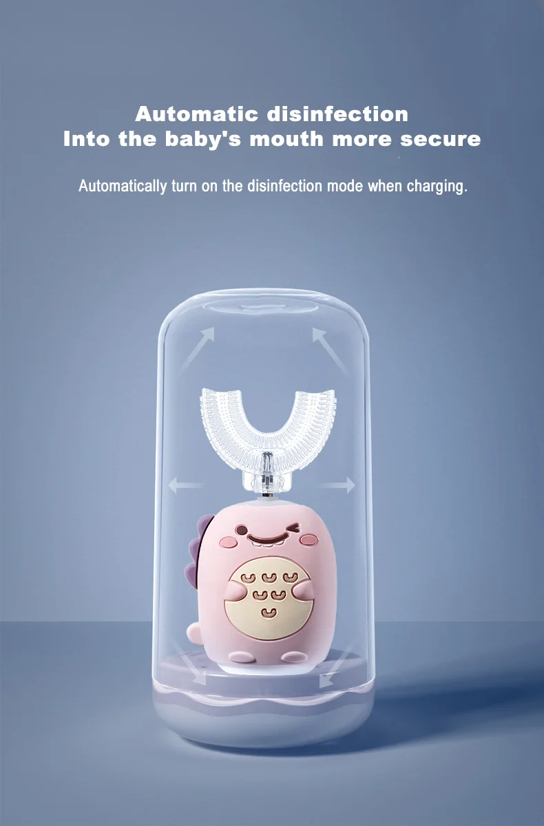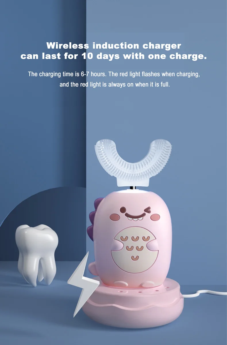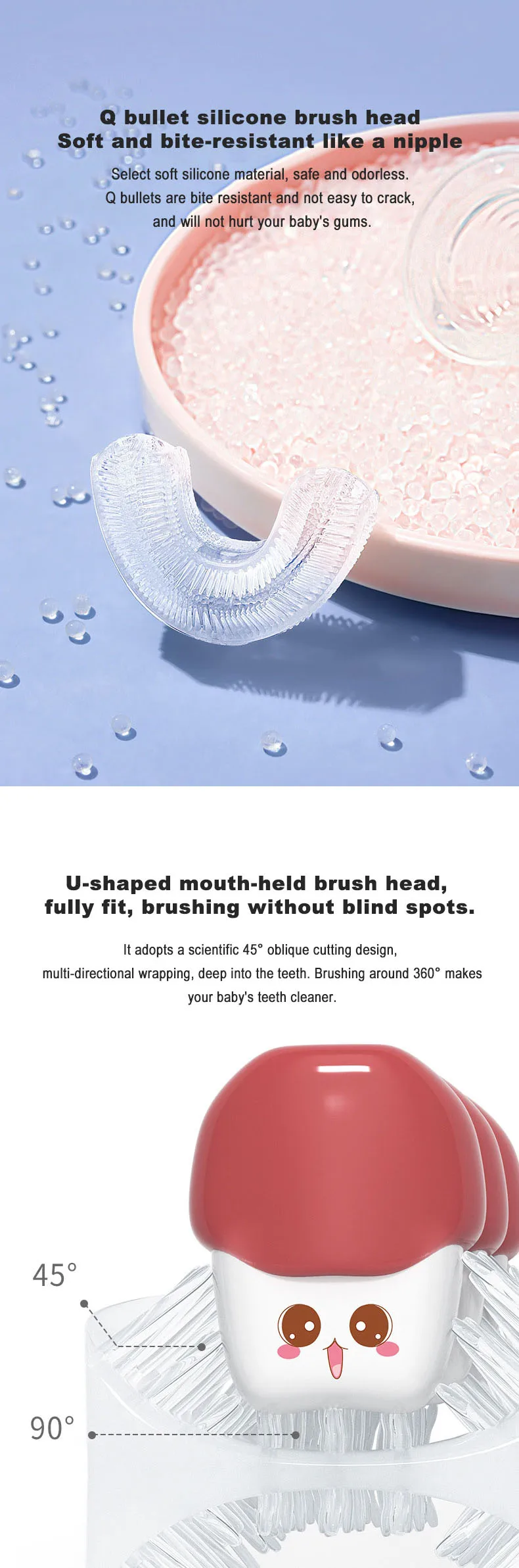 NOKI New auto u shape 360 degrees children kids baby smart ultra soft silicone brush head sonic u-shaped electric toothbrush