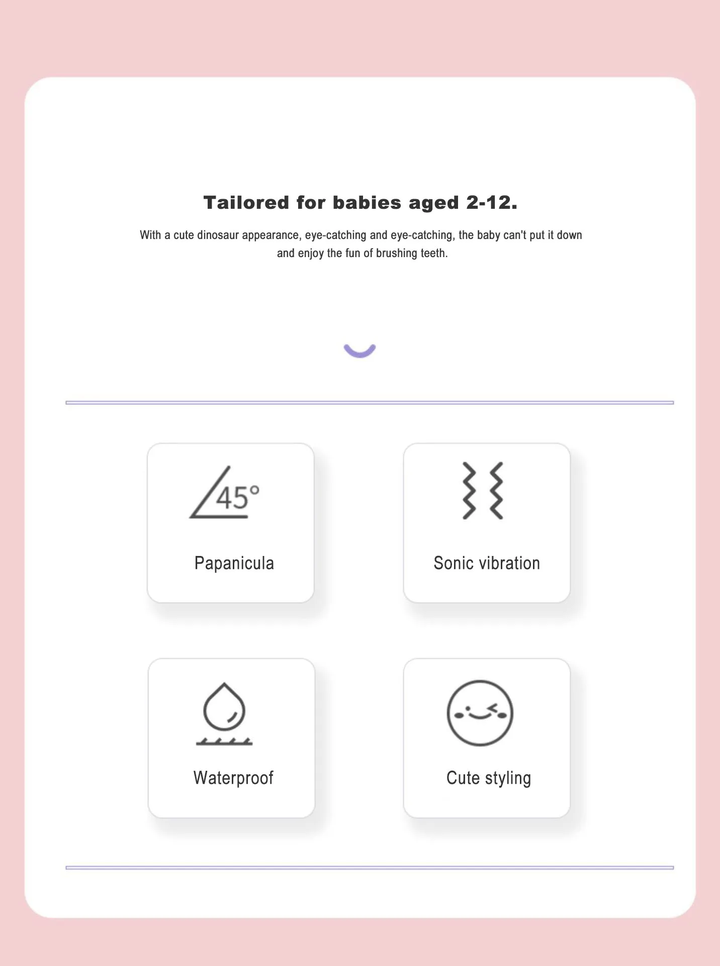 Brush head* 2 ( 2-6years *1 + 6-12years * 1) UV Cup + Wireless charging base * 1 USB charging line*1 User manual*1 |