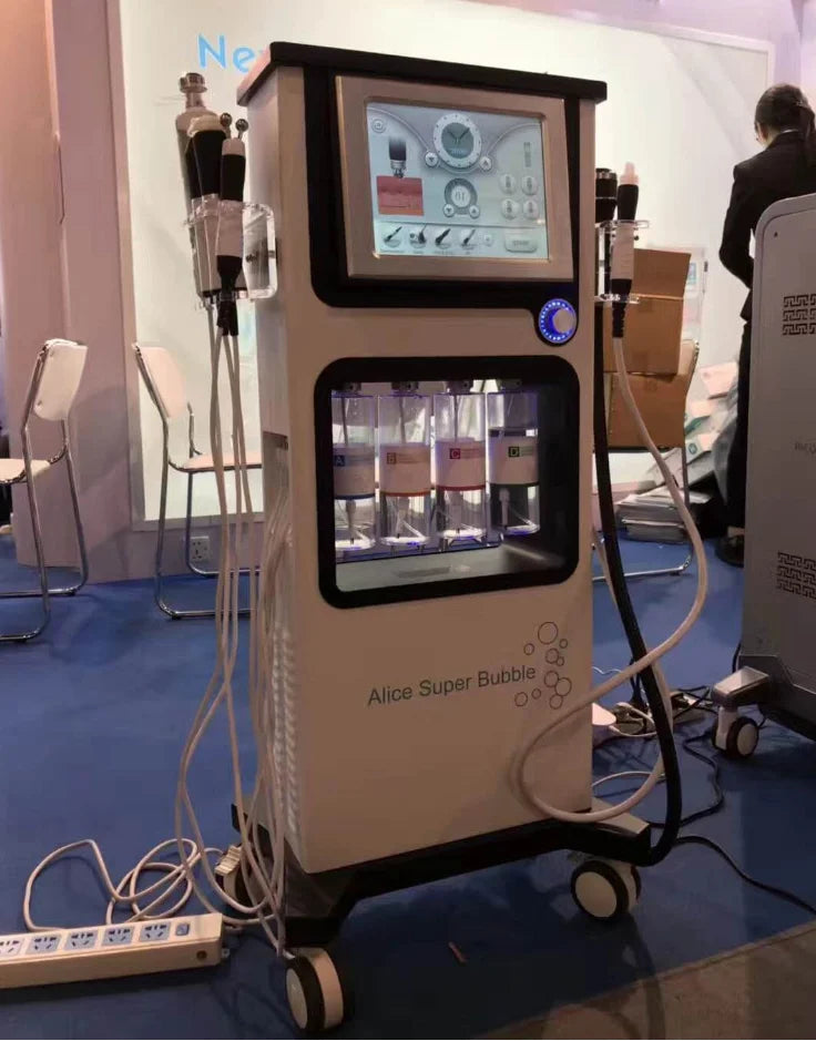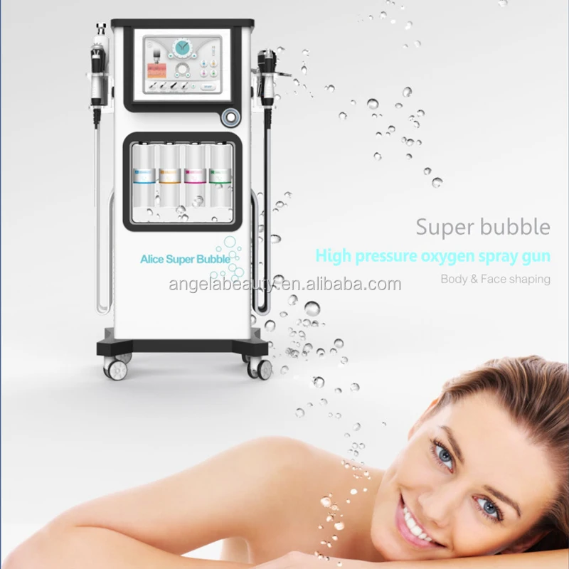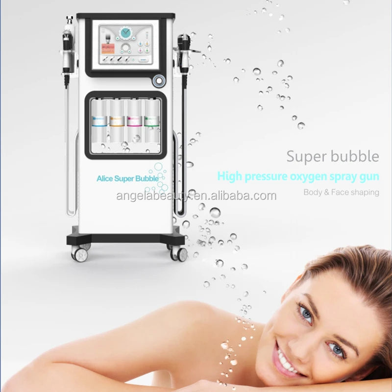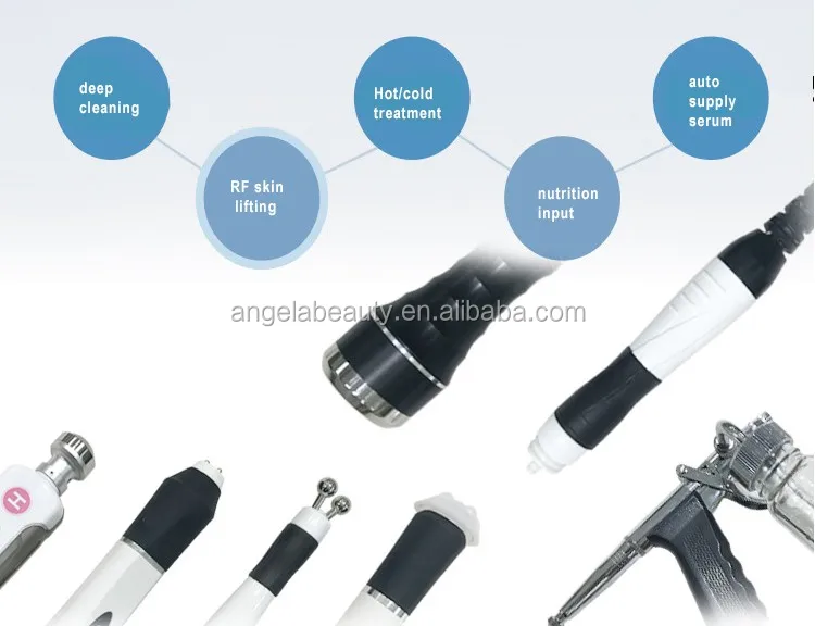 The water & oxygen jet facial machine uses oxygen under extreme pressure and water, takes tiny water drops, through spray-type to act on skin. It can penetrate nutrient components to pores and cracks of skin from the epidermis to dermis layer, then promote rebirth of cells, rapidly and directly supply rich nutrient for skin. Simultaneously, it can clear deep dirt in epidermis. Oxygen of extreme pressure and nutrient liquid can stimulate the rebirth of fiber tissue in dermis, make cells metabolism. So as to improve skin dark, yellow, chloasma, get good effect of wrinkle removal, skin rejuvenation and etc.