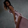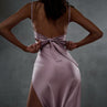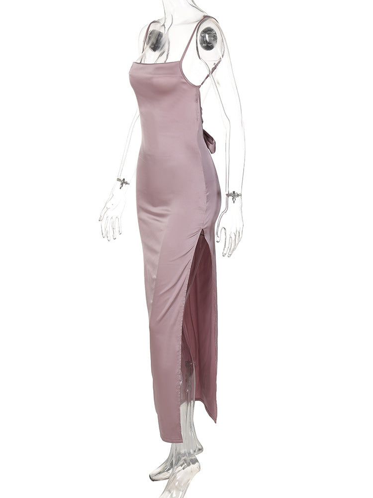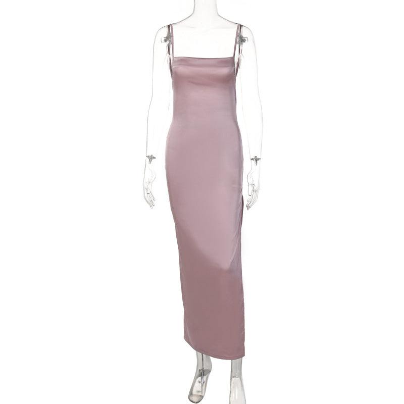 Oem 2022 Spaghetti Strap Sleeveless V-neck Split Ruffle Trim Backless Sexy Dress Satin Nightclub Camisole Dress