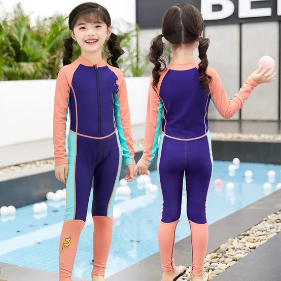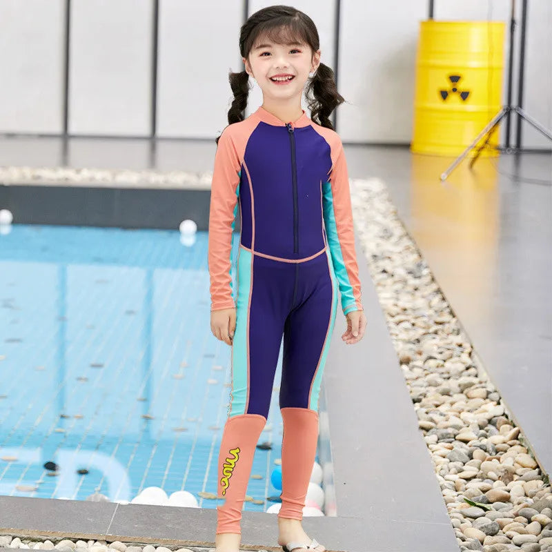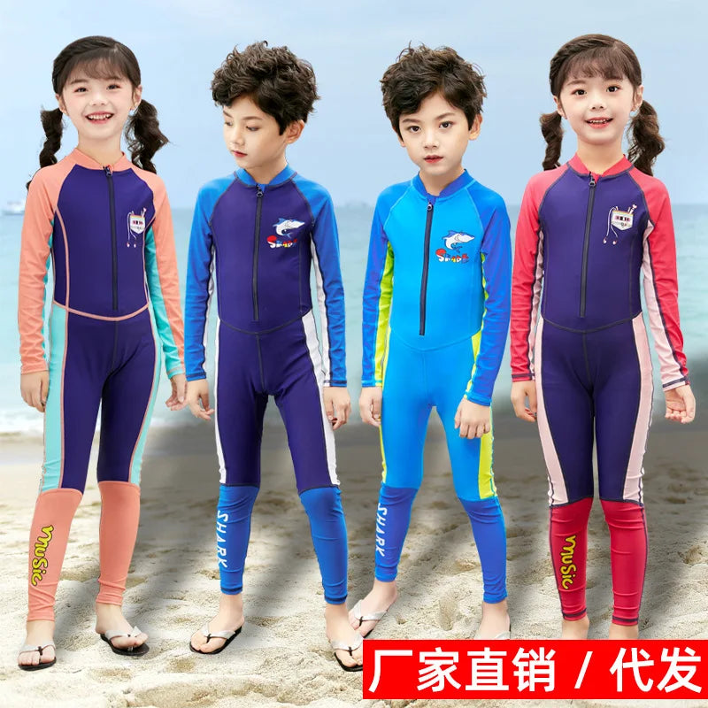 One-Piece Kids Diving Suit Swimsuit with Sleeves Child Full Body Wetsuit Keep Warm Long Sleeve UV Protection Swimwear Surfing