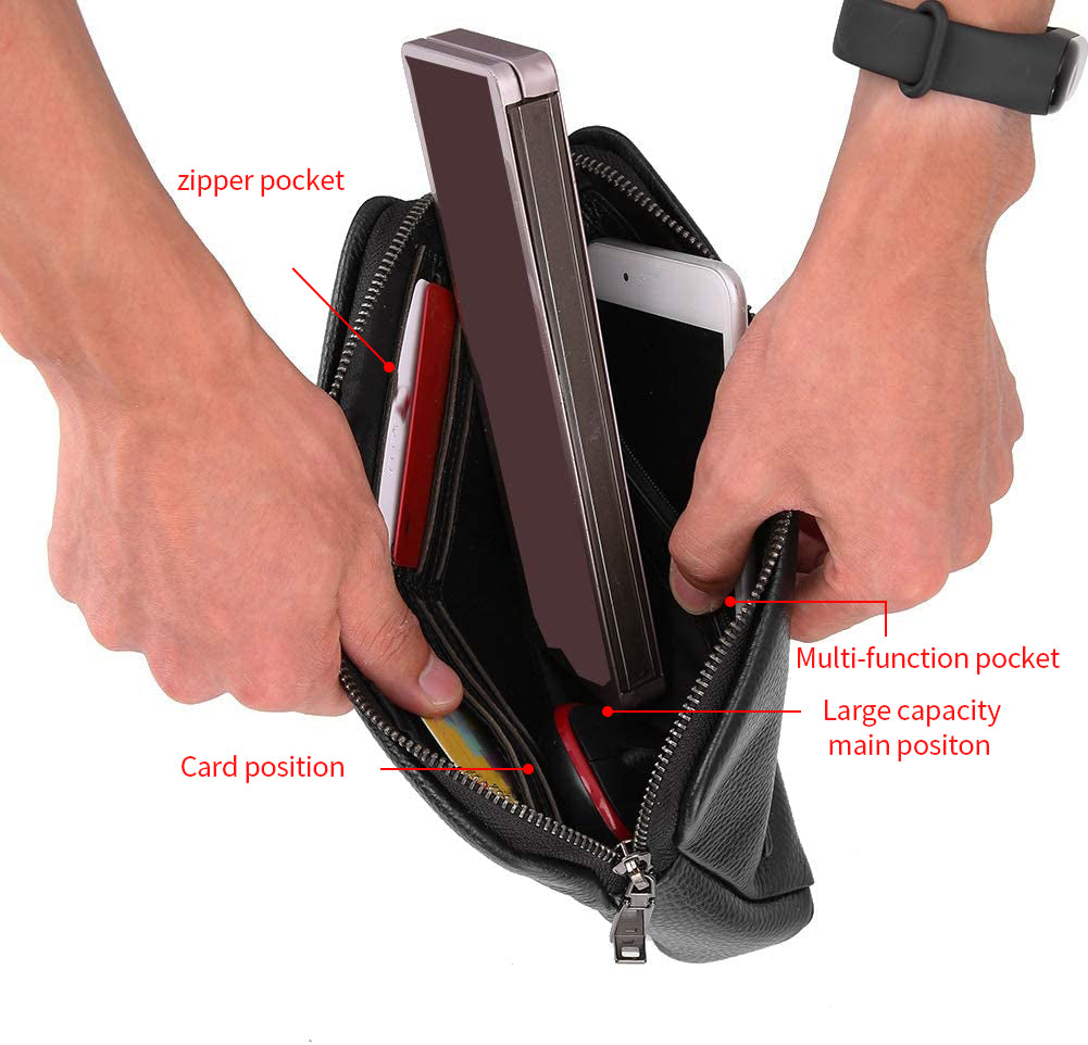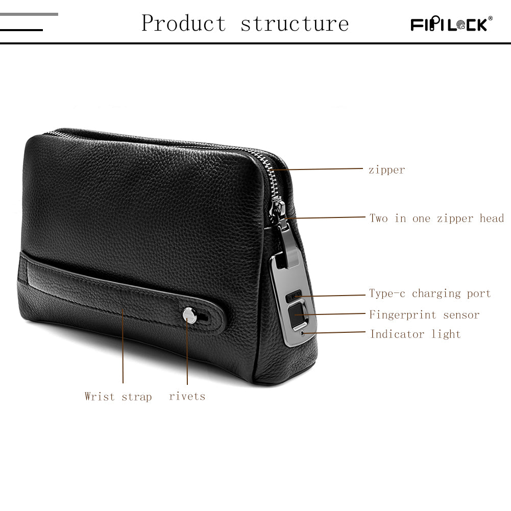 Online Genuine Leather Anti Theft Fingerprint Lock Wrist Knot Mans Bags Leather Design Fashion Handbags Black Clutch Bag