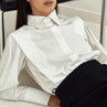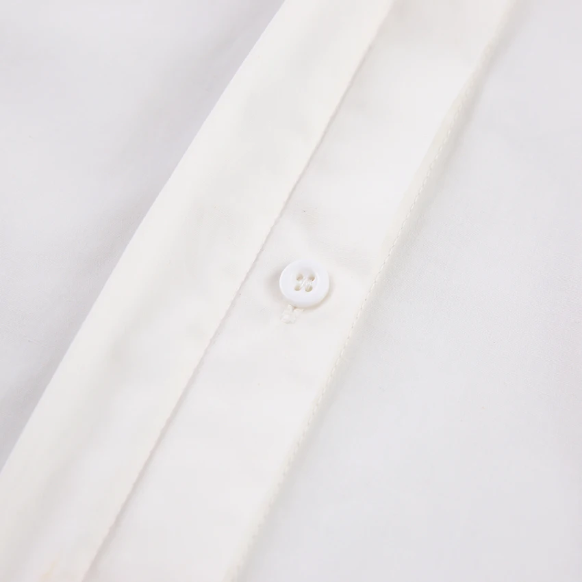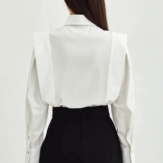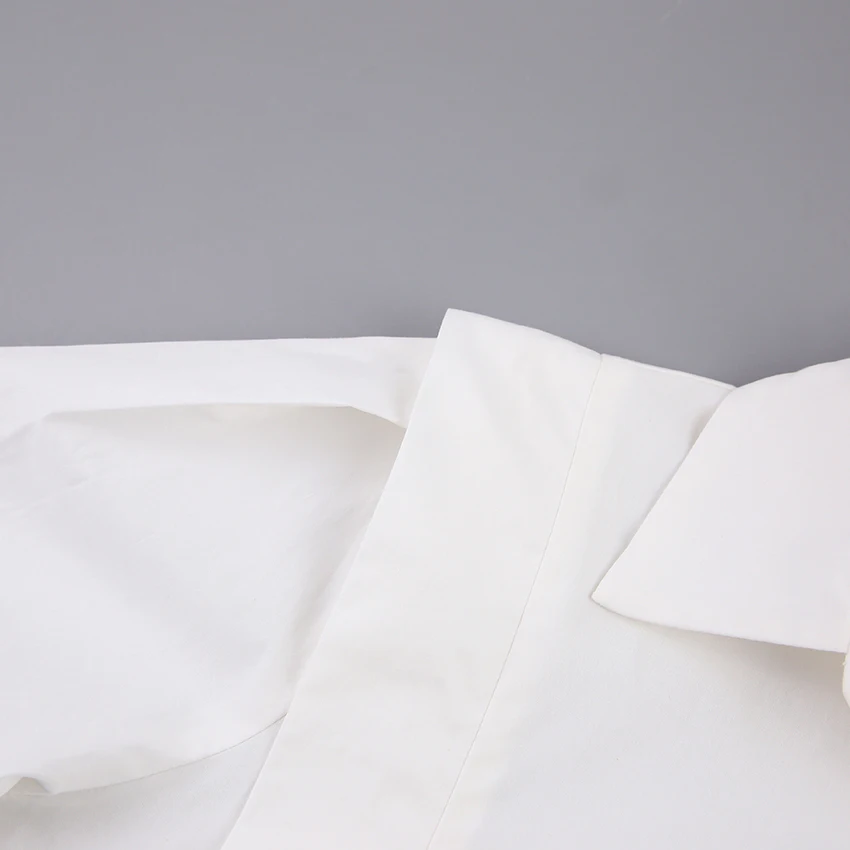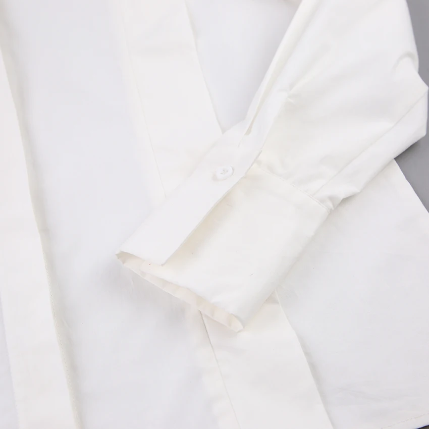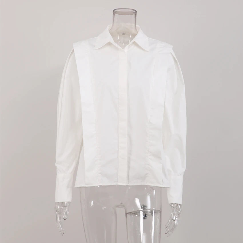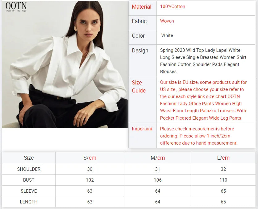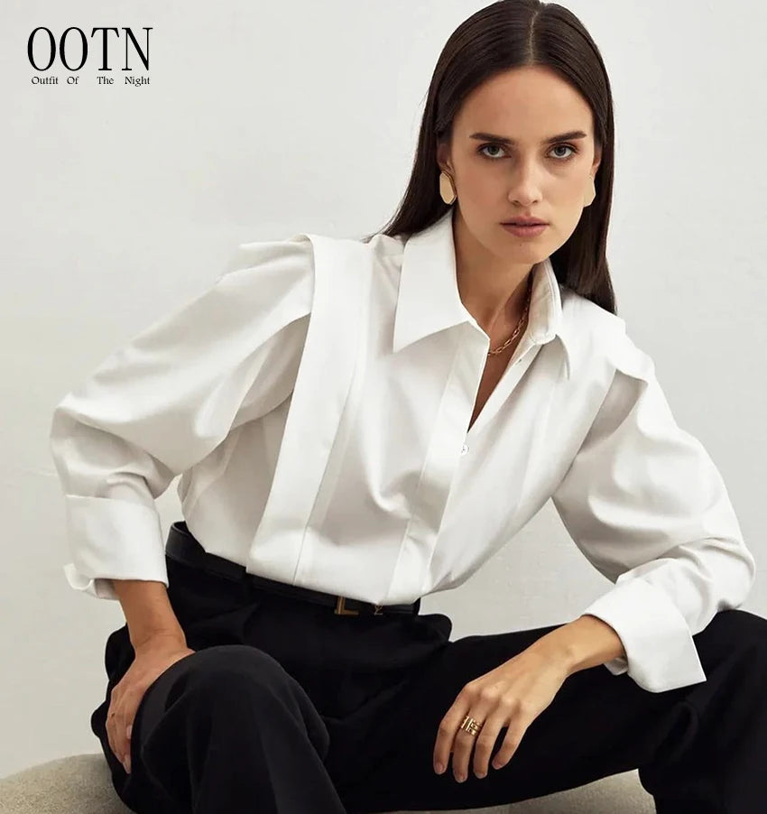 OOTN Spring 2024 Wild Top Lady Lapel White Long Sleeve Single Breasted Women Shirt Fashion Cotton Shoulder Pads Elegant Blouses