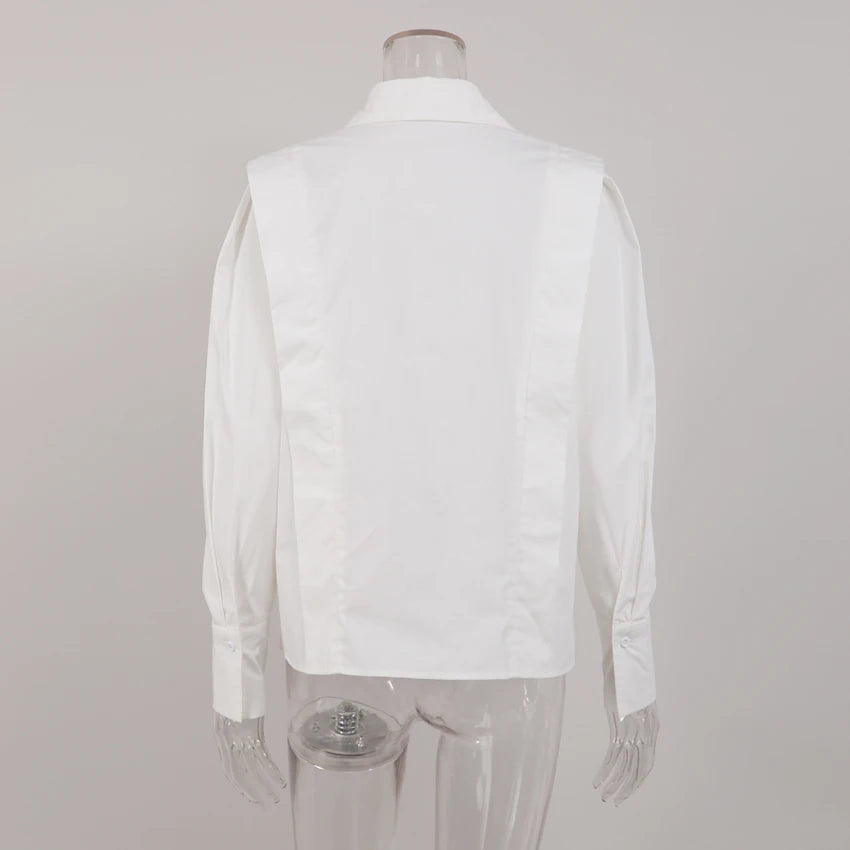 Spring 2023 Wild Top Lady Lapel White Long Sleeve Single Breasted Women Shirt Fashion Cotton Shoulder Pads Elegant Blouses