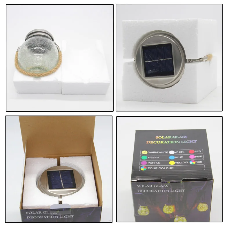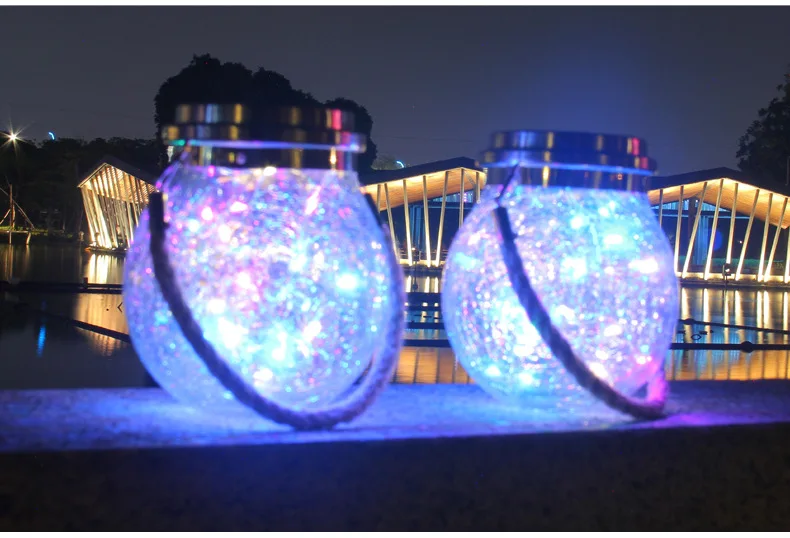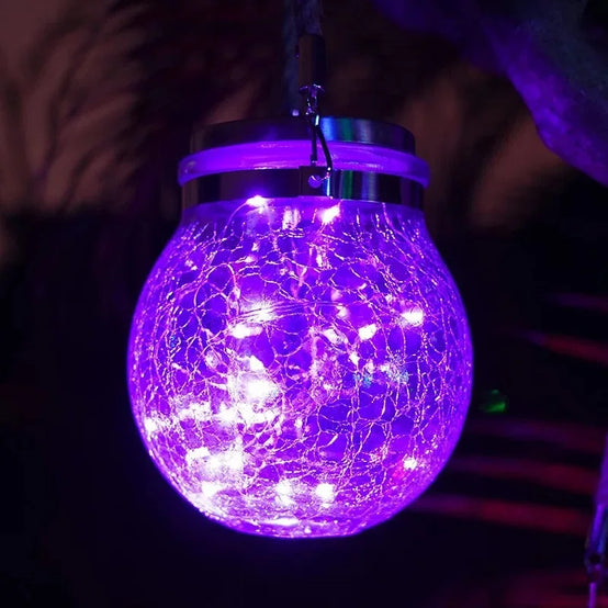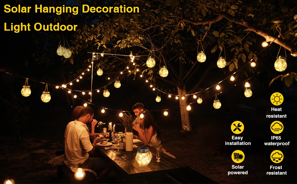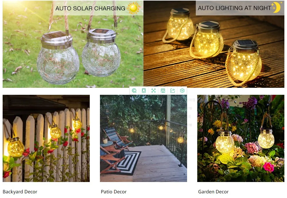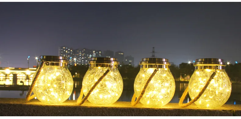Outdoor Decoration Waterproof Patio Garden Lanterns Wedding Solar Hanging Light Warm Crackle Glass Bottle Mason Jar Lights