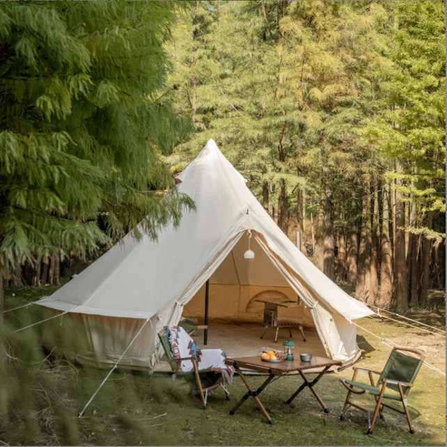 Outdoor high quality cheap cotton canvas ripstop 3m 4m 5m 6m 7m luxury glamping bell tents waterproof hotel tent for sale