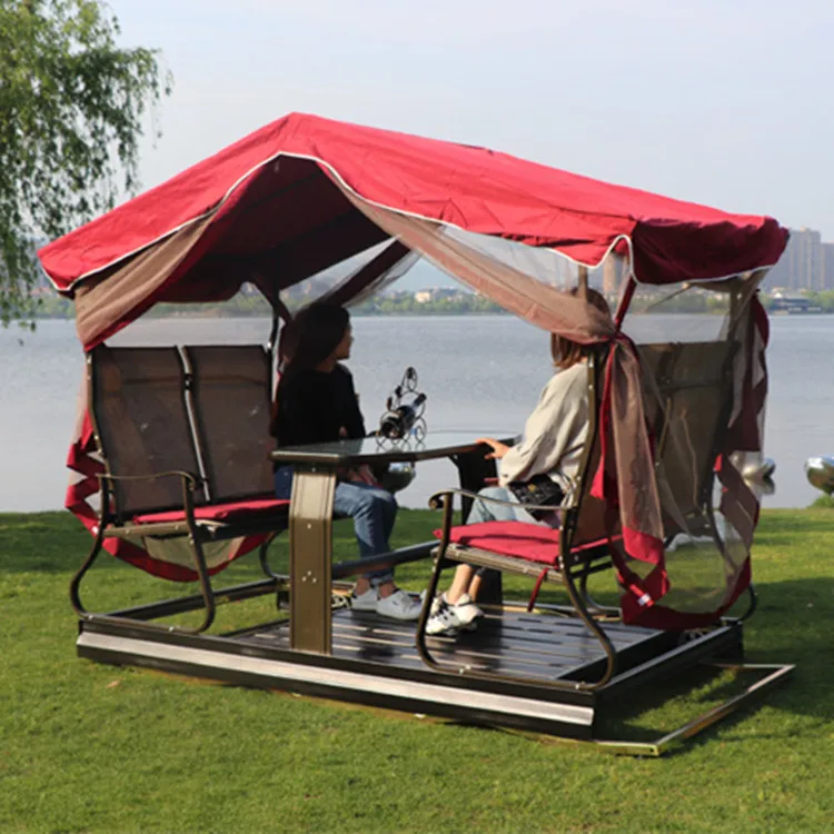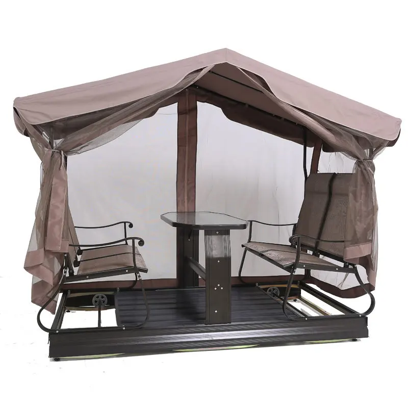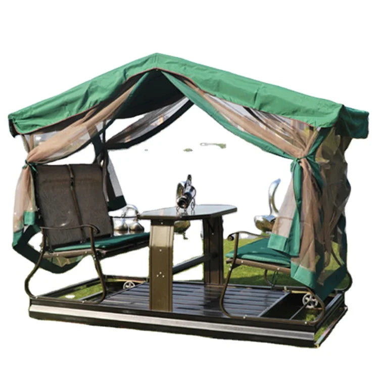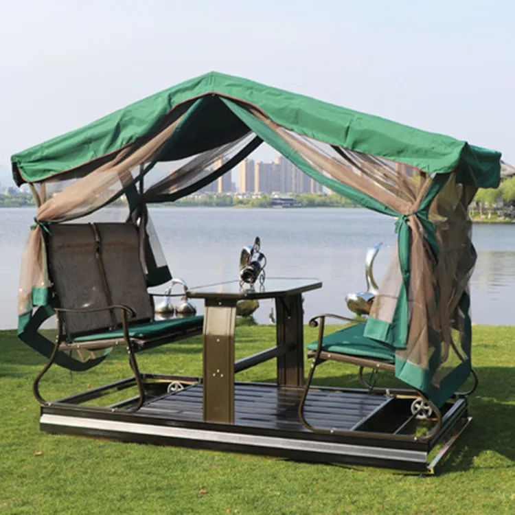 Outdoor leisure rocking chair swing bed villa garden terrace four-person power rocking chair track pulley rocking chair