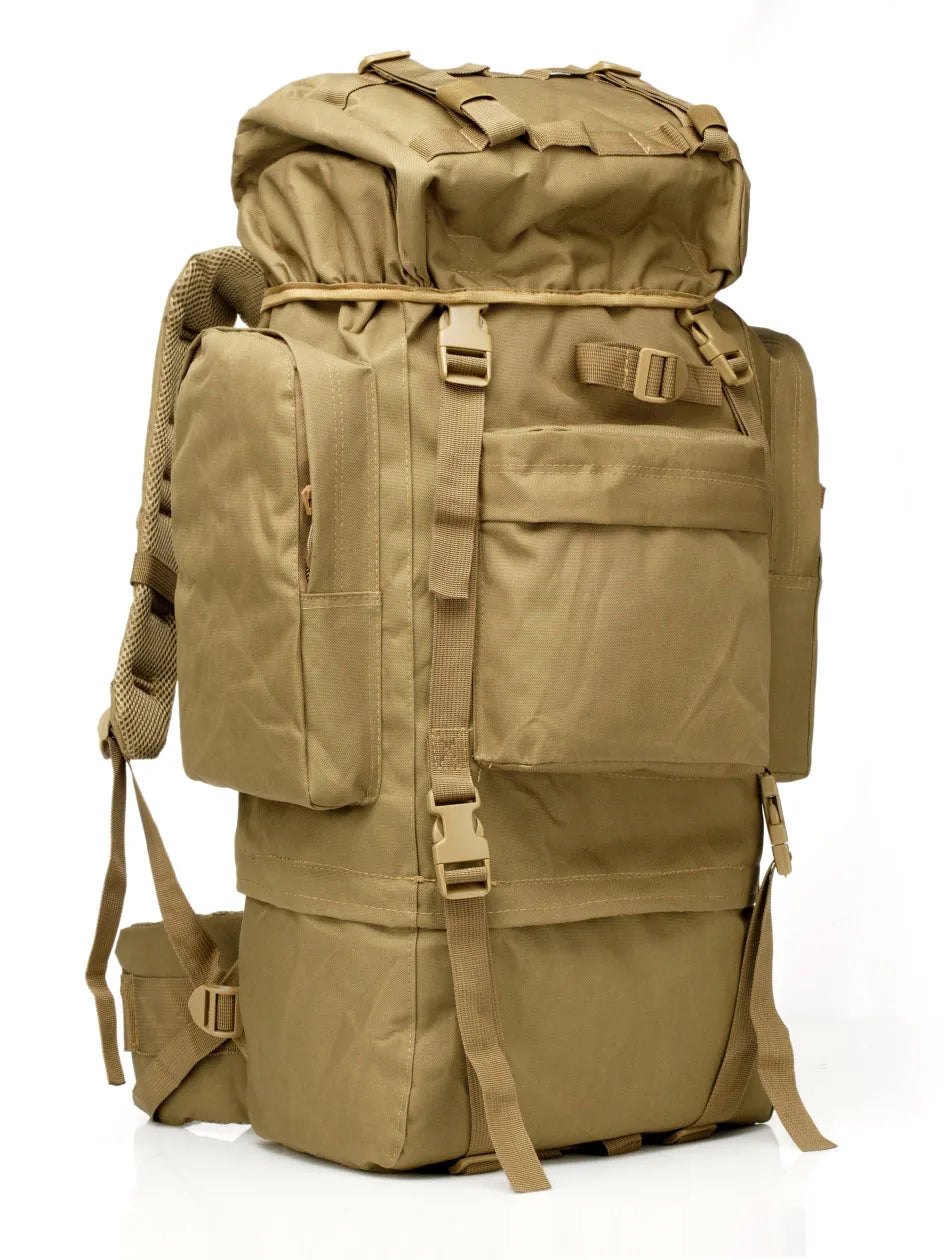 Outdoor tactical 70L travel custom waterproof backpack hiking hunting rucksack bag