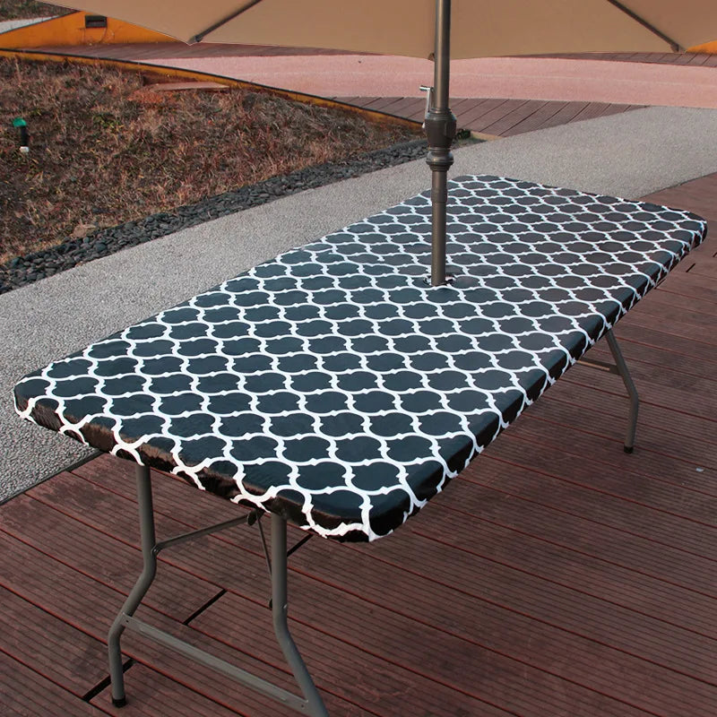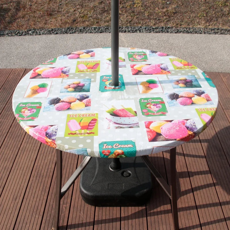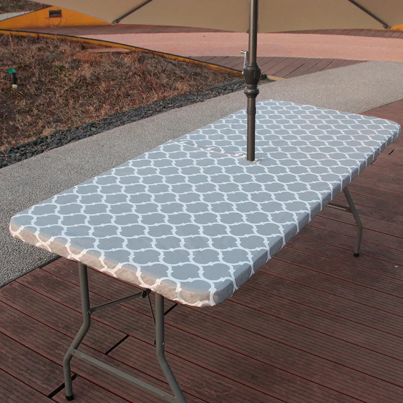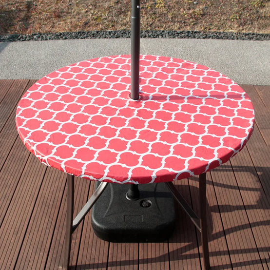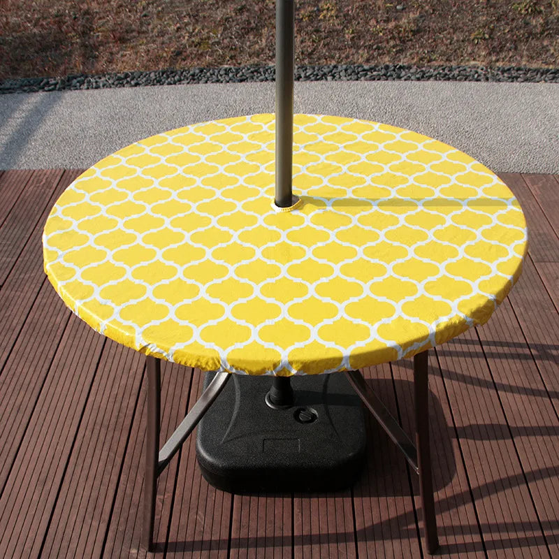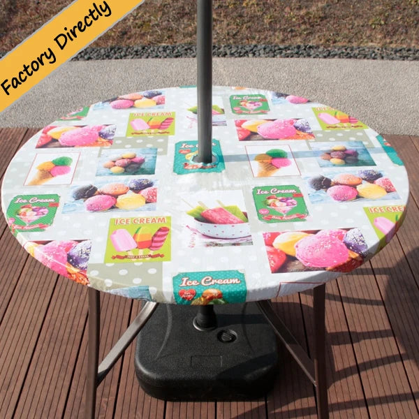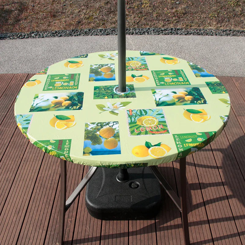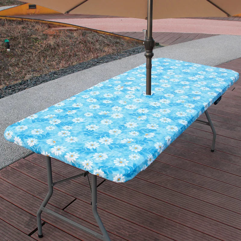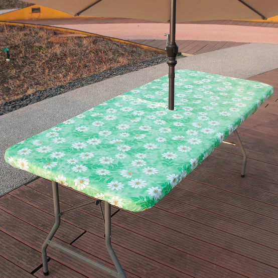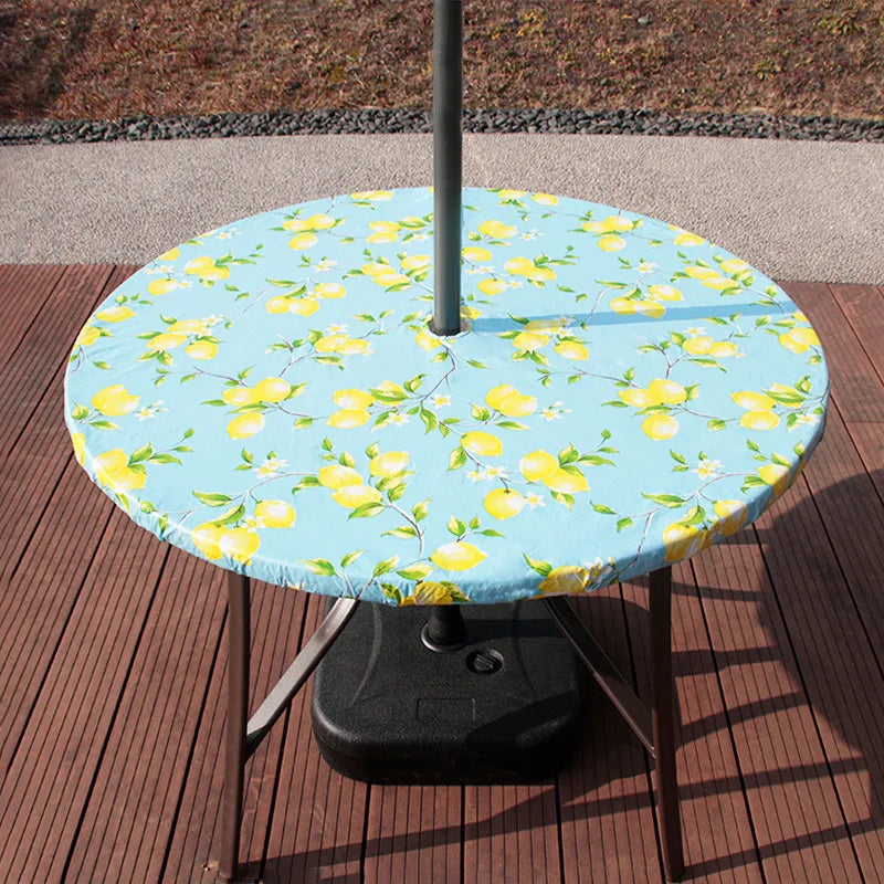 Outdoor Umbrella Hole Tablecloth Spillproof Waterproof with Zipper for Spring & Summer, Family Patio Garden Cafe Tabletop Decor