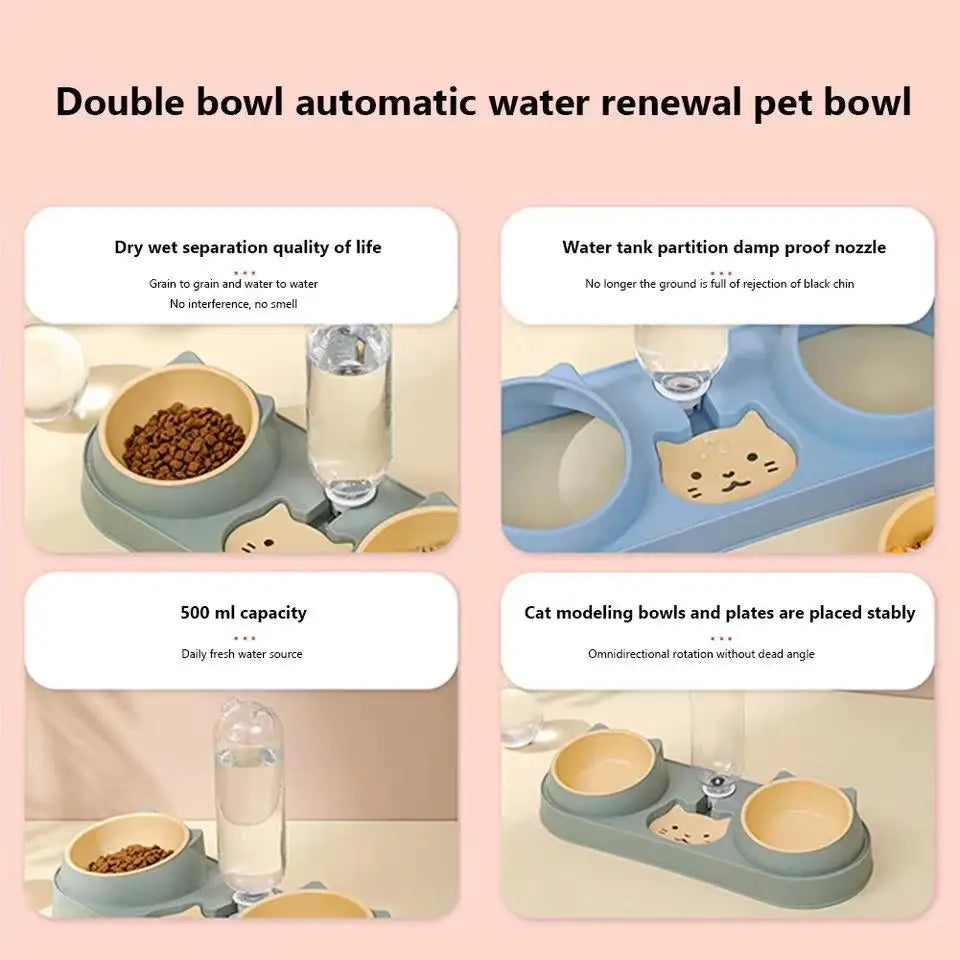 Pet Cat Food Bowl Dog Automatic Feeder with Water Food Storage Cat Drinking Water Bowl Safety Material Supplies