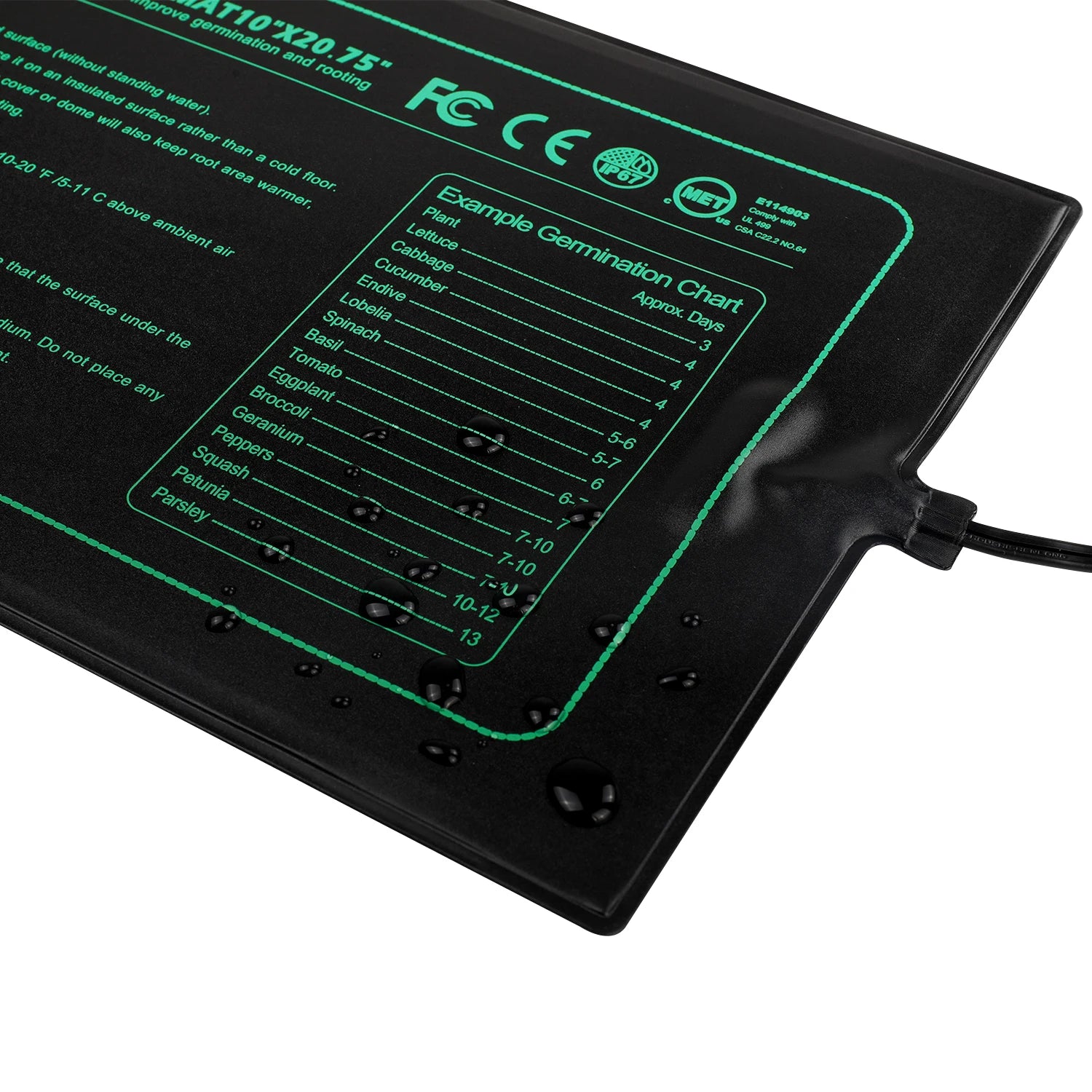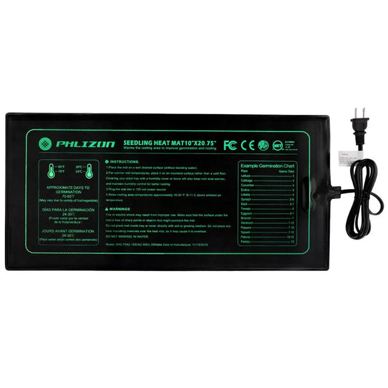 Phlizon Durable Waterproof Seedling Heat Mat Warm Hydroponic Heating Pad 10"x20" MET Standard