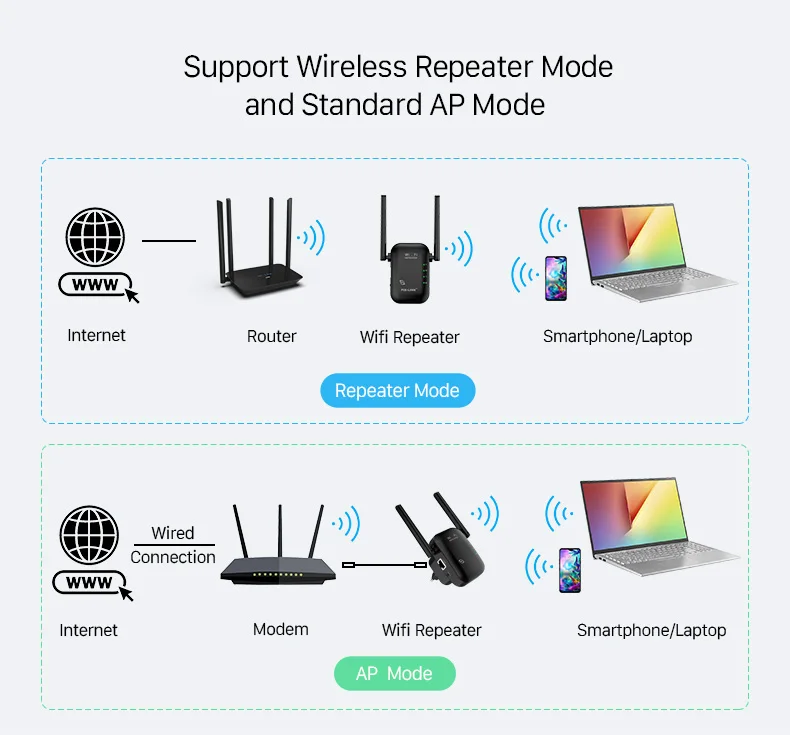 PIX-LINK Hot Sale 802.11n/b/g 300Mbps Antenna WIFI Range Extender Wireless-N Repeater / Extender / Expander Network Routers