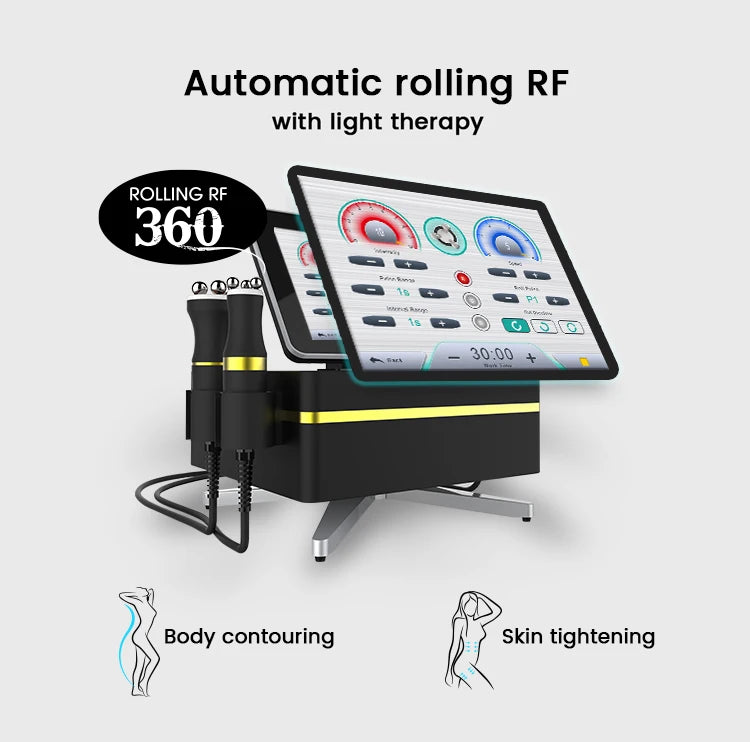 —360 Degree rotating RF- it can be a great alternative to a facial surgical or clinical procedure which can be used to tighten skin and reduce wrinkles on the eye's around, face, chin, neck, jowls,breast, underarm, arm, wasit, belly, butt,leg, thigh etc.