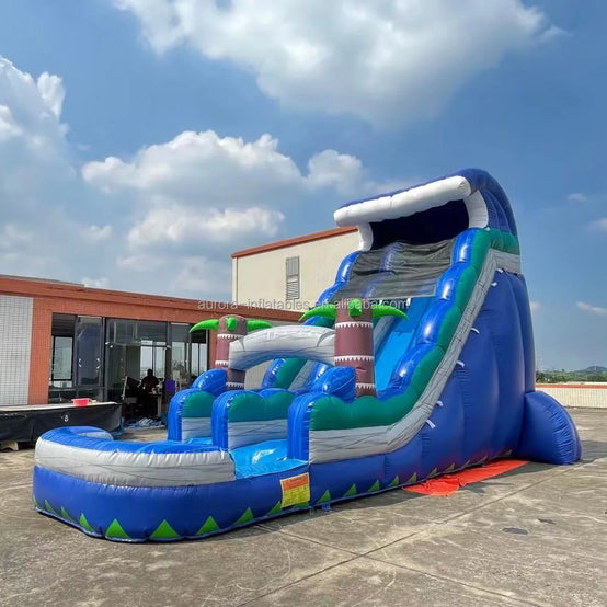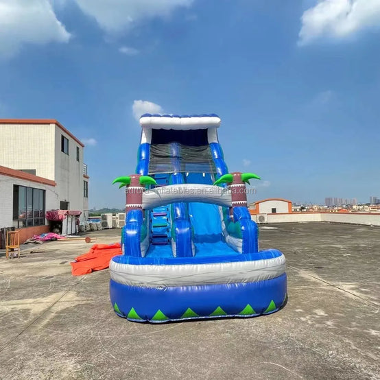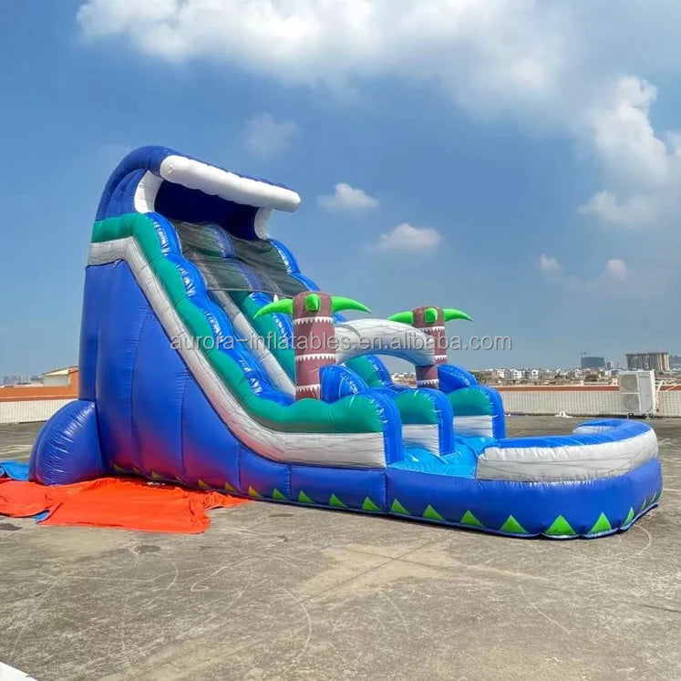 Popular palm tree inflatable water slide for kids outdoor kids water slide with pool cheap on sale