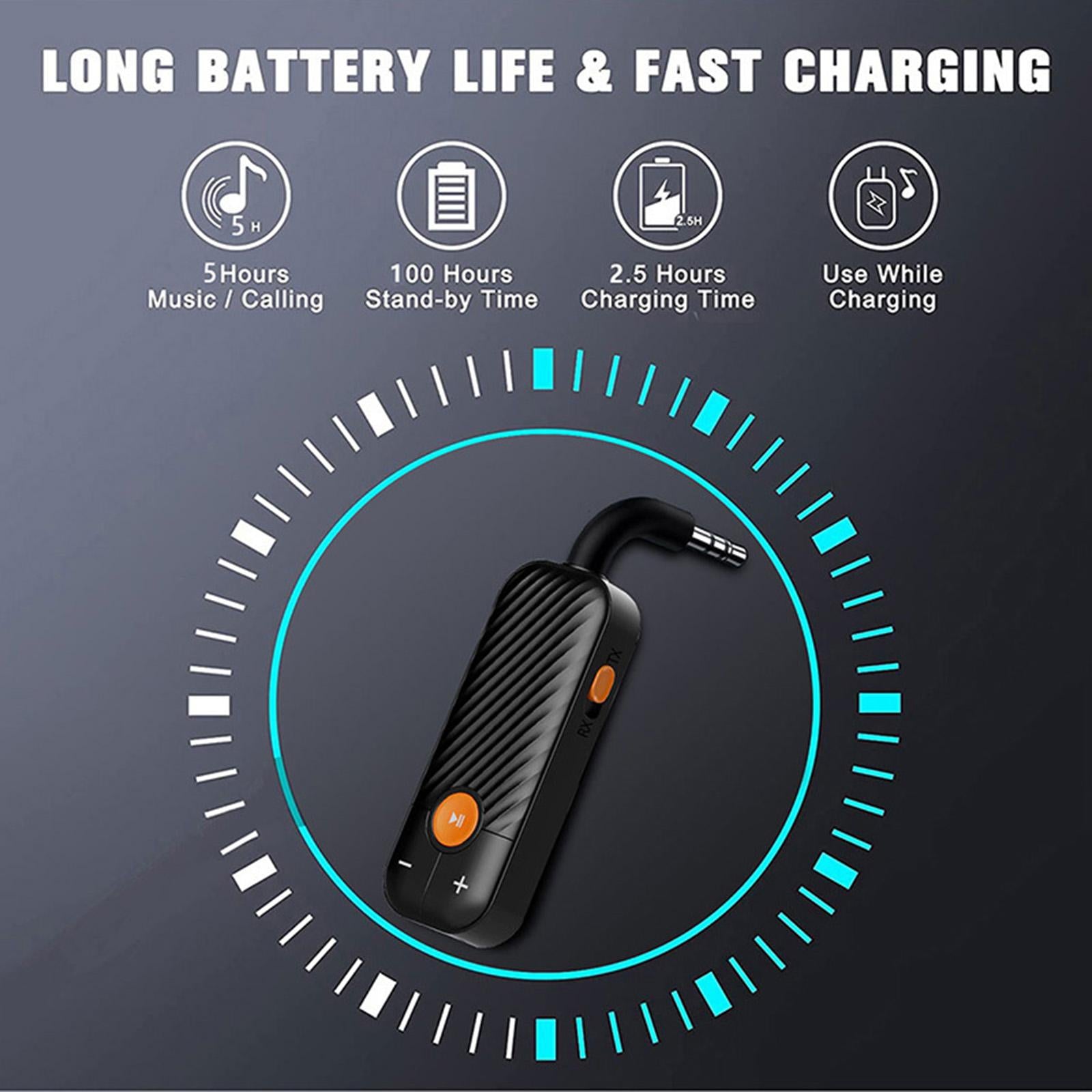 - V5.2: Fast response, 3.5mm Aux supports auto reconnection and stable transmission.Turn your wired headset into wireless headset hifi performance, bring you more crystal clear sound.
