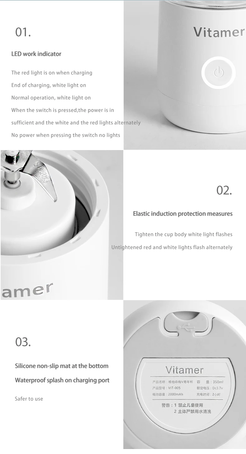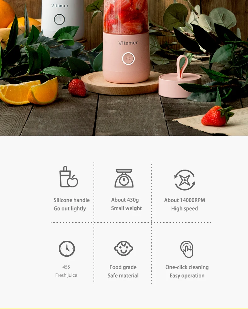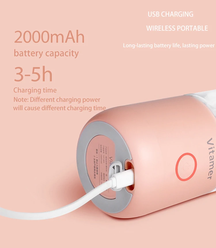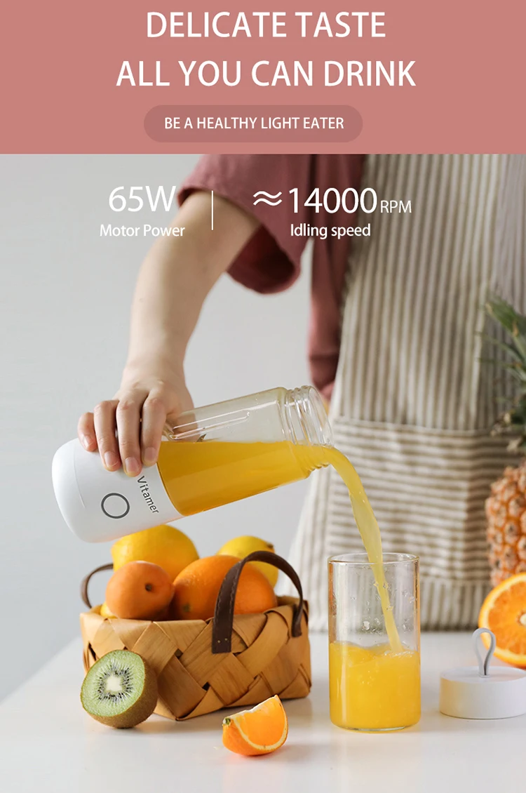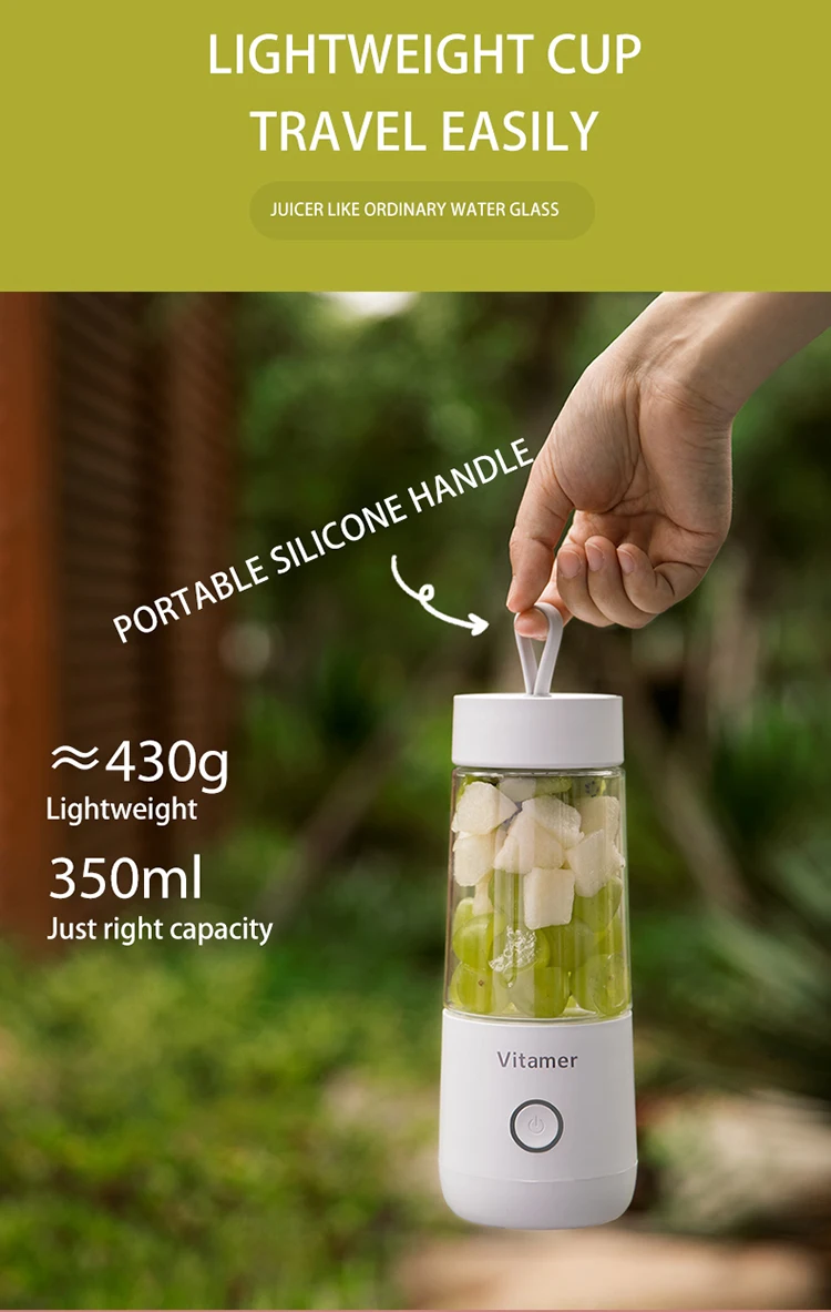 Portable Blender 350ml Blender Rechargeable Bottle , Low Noise Mini Fruit Blender Mixer