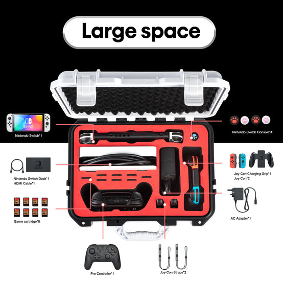 · 【Large Capacity】 The carrying case for Nintendo Switch can storage the Nintendo Switch Console include a Pro Controller, Nintendo Switch Dock, Joy-Con Charging Grip, AC Adapter, Game cartridge,HDMI Cable, Joy-Con Straps etc.
