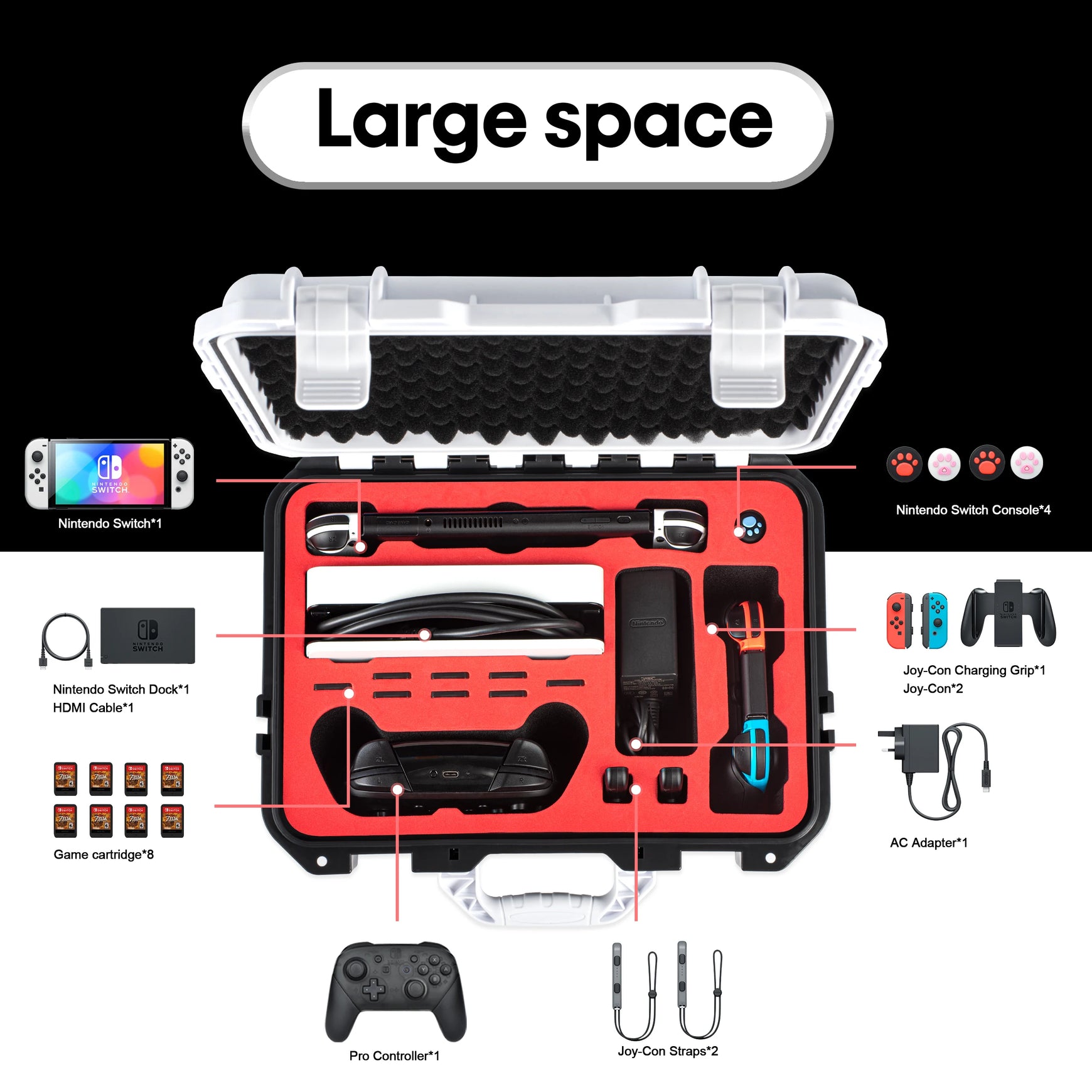 · 【IP67 Waterproof】The carrying case for Nintendo Switch is IP67 waterproof level.It can provide the protection for Nintendo Switch about 30mins within 1M underwater.If rainy, the carrying case for Nintendo Switch will protect your device from raining