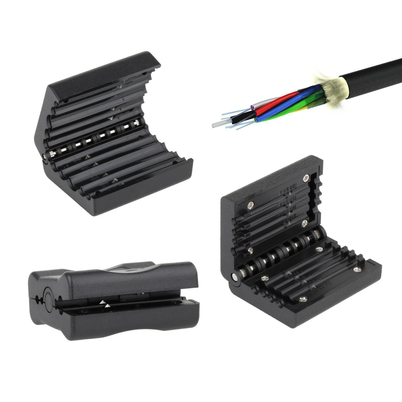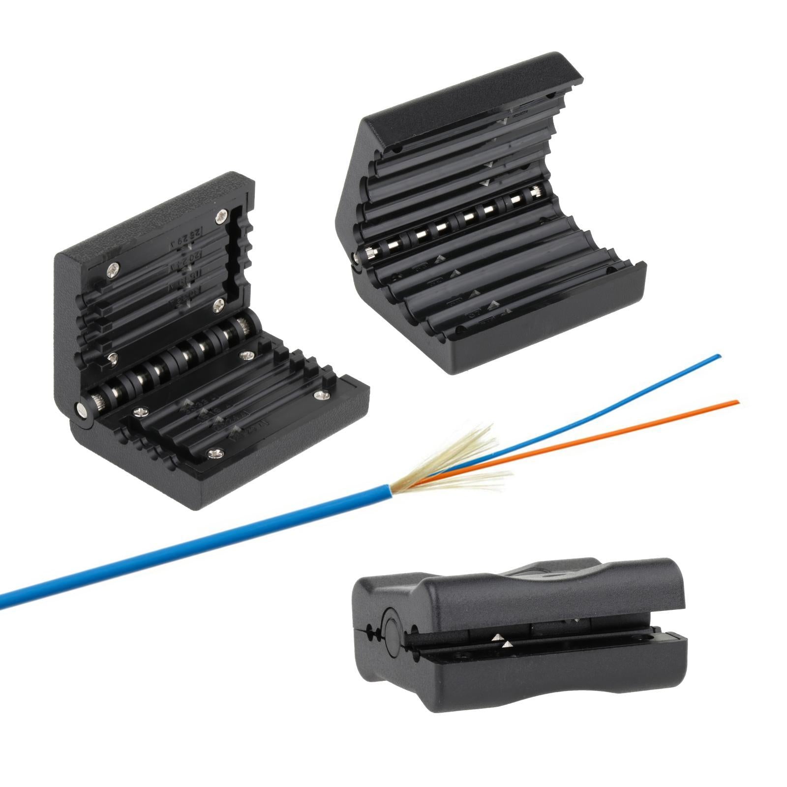 - Functions: Fiber optic cable stripper, with different sizes of the guide slot for fiber optic bundle tube longitudinal stripping, It is an efficient and indispensable tool for fiber optic cable termination.