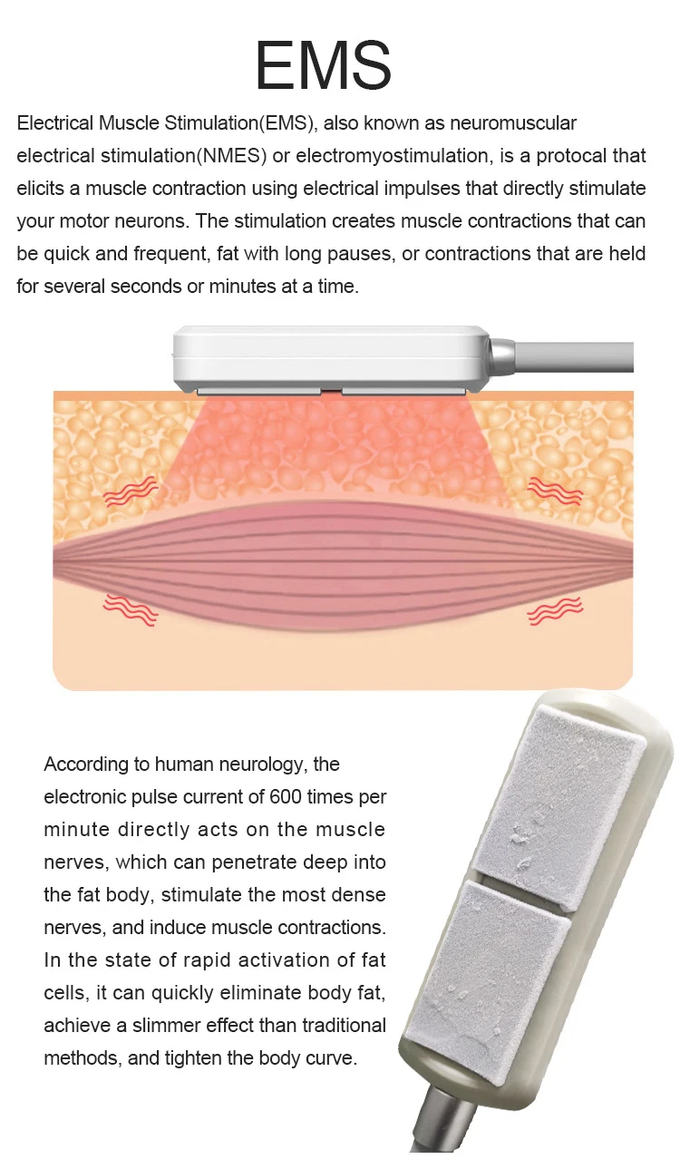 According to human neurology, 600 times electronic pulse currents per minute directly act on muscle nerve, can deeply reach the fat body, stimulate the most intensive neuro to induce muscle to generate shrinkage exercise. In the rapid active state of fat cells, the local fat layer is sufficient exercise, the body's basal metabolism is improved, and the effect is still continued within 24 hours after use. The kinetic energy is transformed into slimming energy, quickly eliminates human fat, and achieves more slimming effect than traditional methods, and tightens the curve of the whole body.