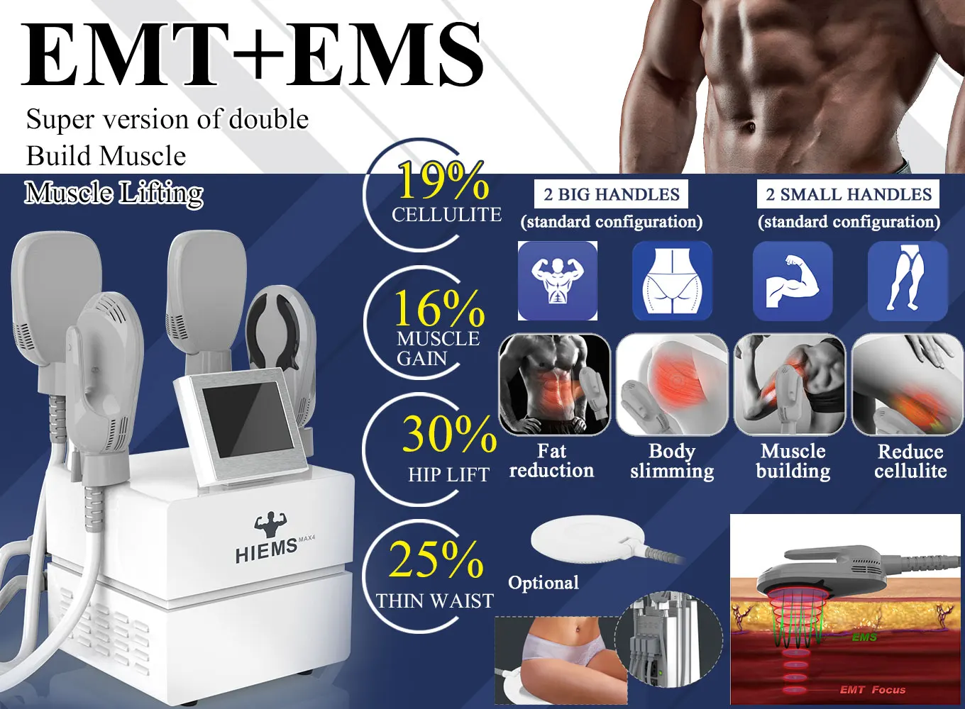 Portable HiEMT pro max hip lift hiems 4 handle em body slim sculpt pelvic floor repair ems muscle stimulator body sculpt machine