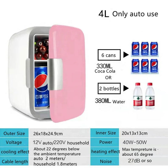Portable Mini 4L Refrigerator Cooling Heating Freezer Auto Power Storage friger