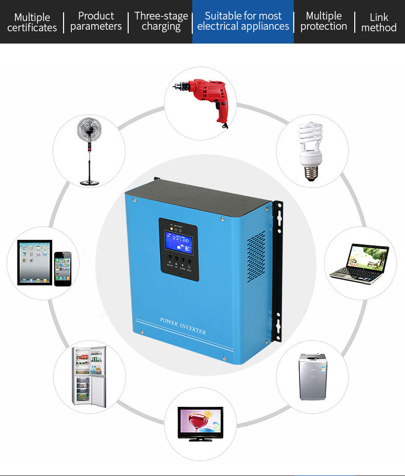 LCD (inverter output voltage,input AC voltage,battery capacity percentage,load capacity percentage,etc.)