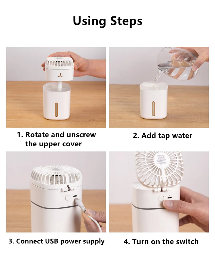 Portable wireless spray mist maker personal space air humidifiers mini fan humidifier