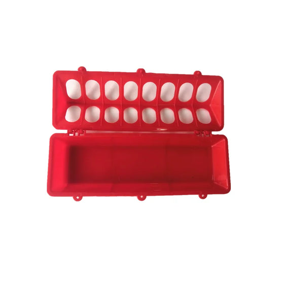 3.The top of the feeder has 16 optimally sized feed holes and ridges designed specifically for chicks to feed from.Easy to open and close.