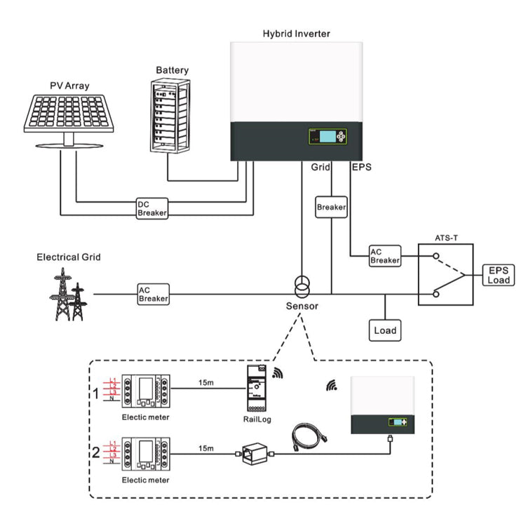 Hybrid solar inverter have function of both on grid inverter and off grid inverter,so hybrid solar system have the advantage of on grid and off grid solar system, all equipment are connected to hybrid solar inverter,so the hybrid inverter is the most important device for the system.