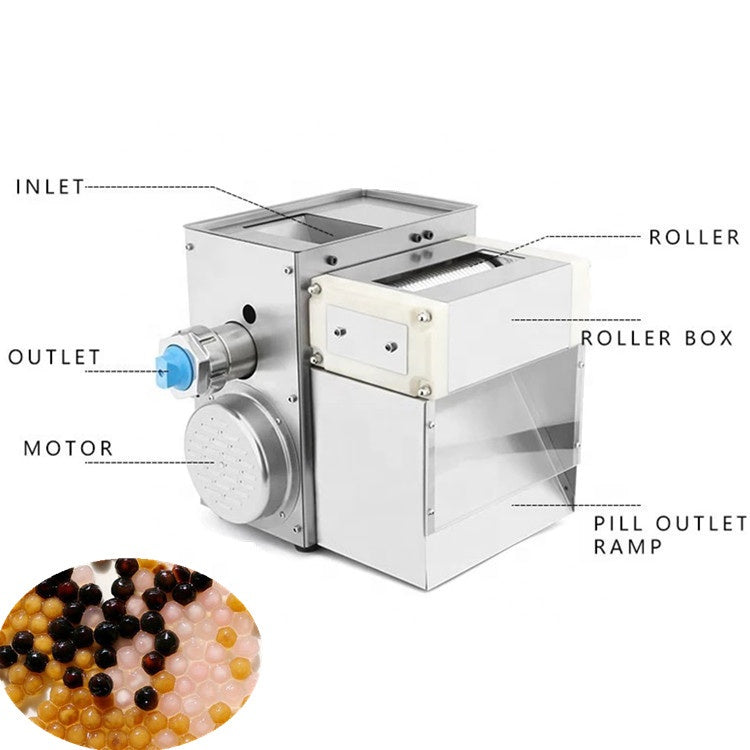 This machine can be applied to make round food or herbal pills. Basically, used in tapioca pearls making for bubble tea.