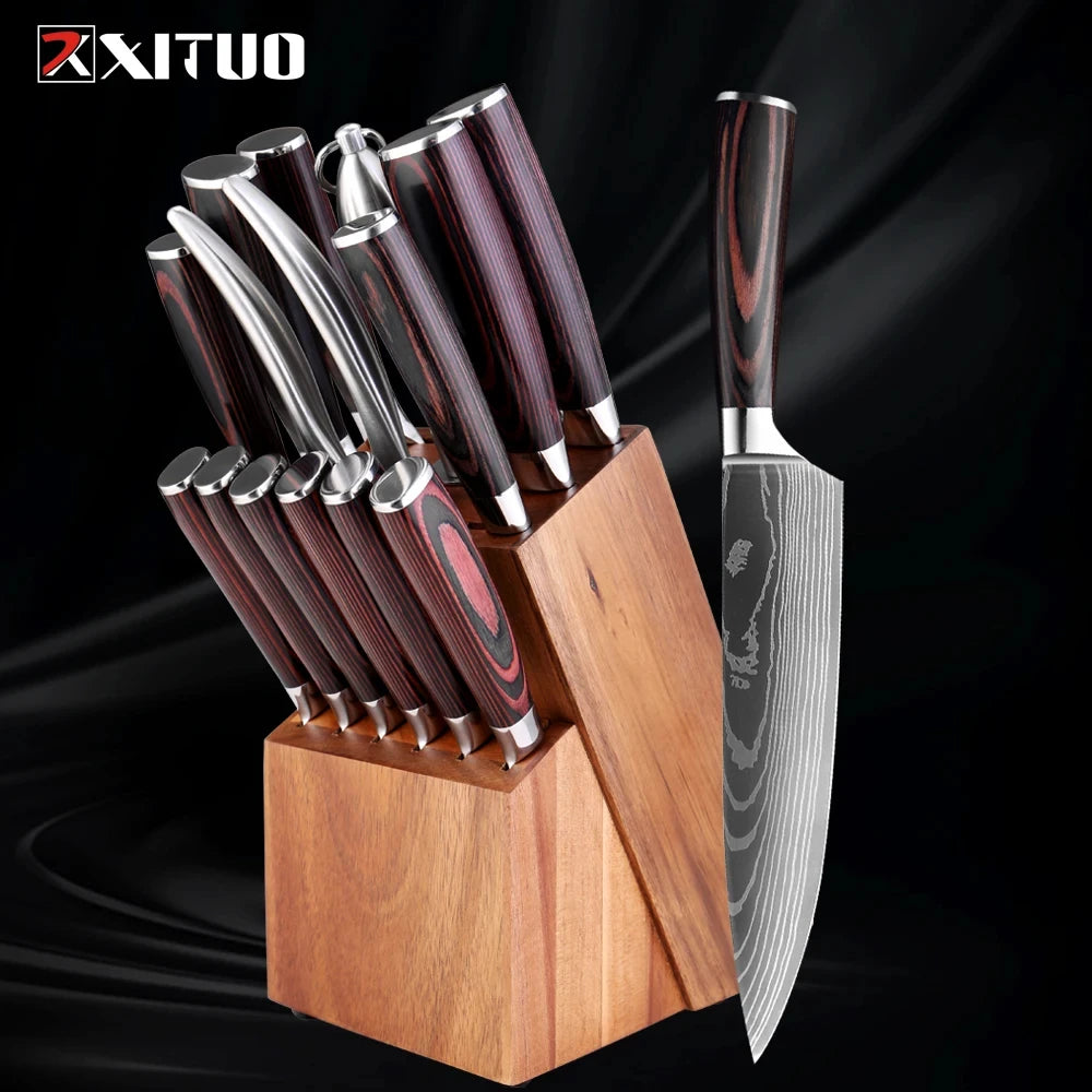Professional chef knife 15-piece Japanese Kitchen Knife Set Ultra Sharp for Very Fast Cutting With holder Scissor Sharpening Rod