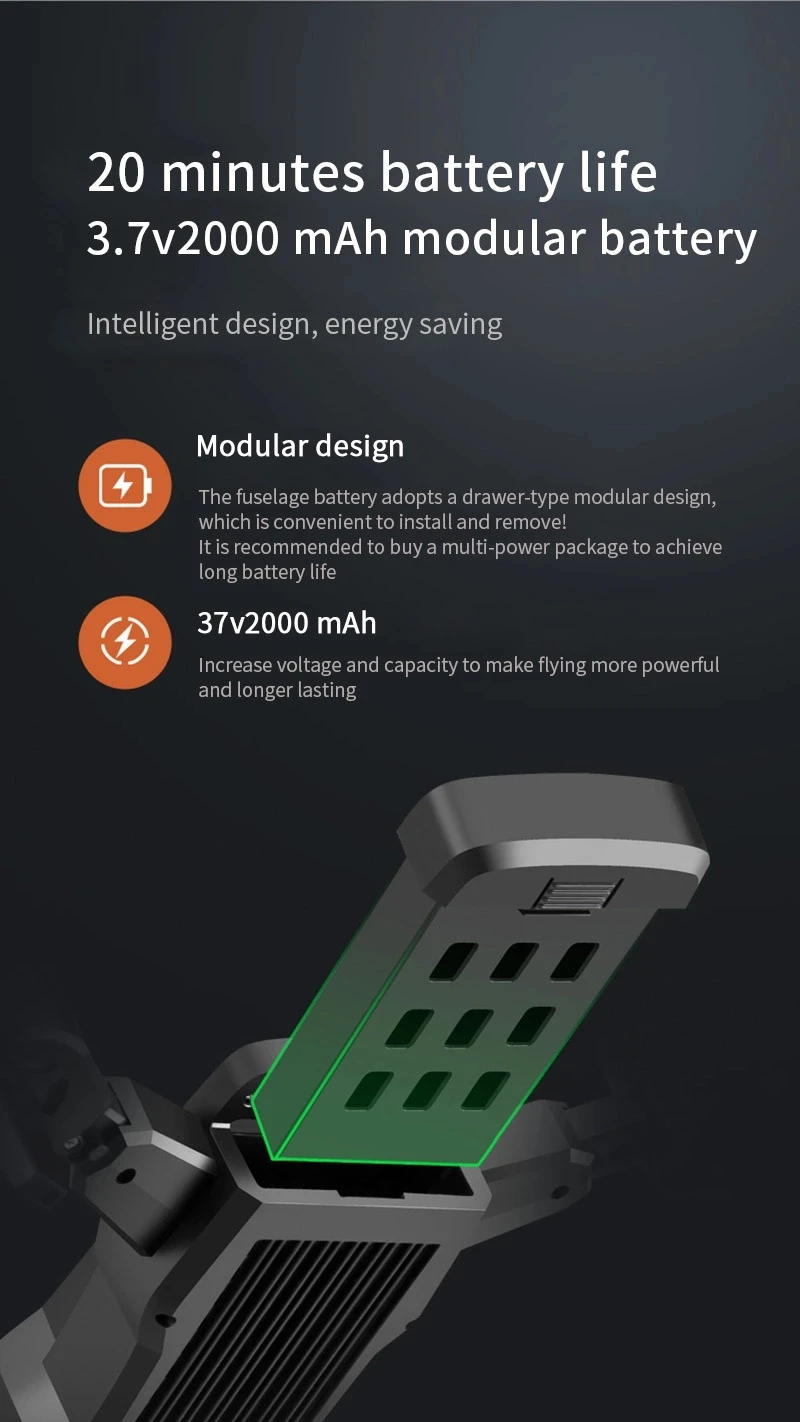 Headless mode, Altitude Hold Mode, 3D View Mode, With Camera, With LED lights, with G-sensor, 3D flip, One Key Takeoff / Landing, APP Control, Voice control, With Remote Control, Foldable