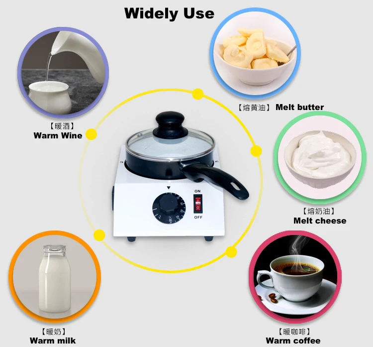 * 🍫[Wide Uses]- Chocolate melting heating pot with melting and heating functions is very suitable for home use, cafes shop, bars, restaurants, bakeries, chocolate shops to melt chocolate or cheese, heat cream, milk and make delicious desserts.