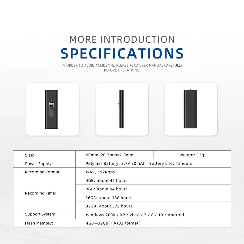 Professional Usb Long Battery Life High-quality Record Video Compact Design Secret Digital Mini Easy Carry Voice Recorder