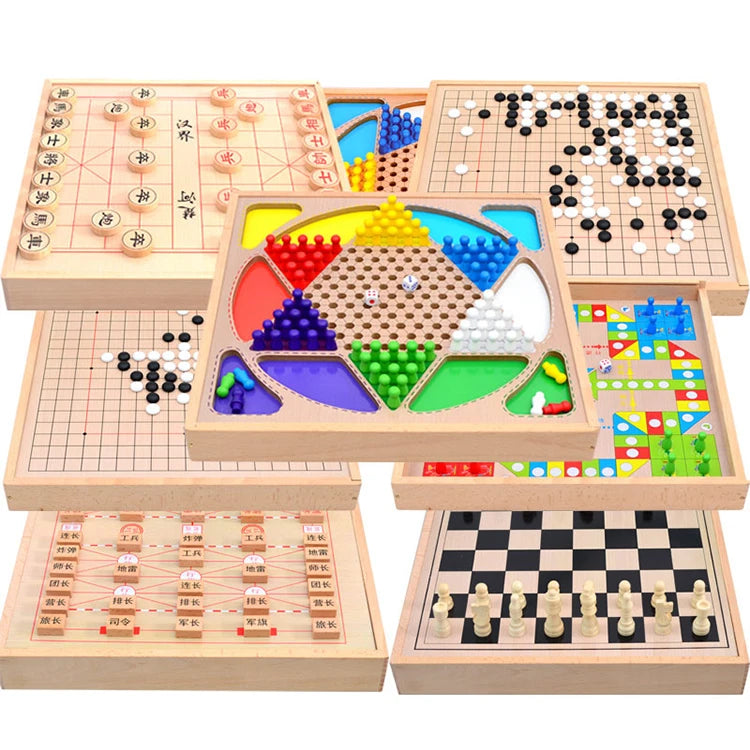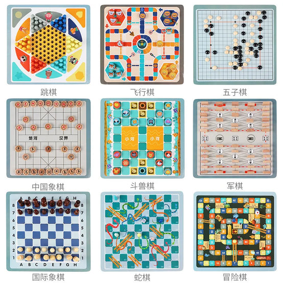 Promotional Educational Multi Functional Chess Set of Aeroplane/Ludo/Chinese/Animal Checkers/Gobang for Kids