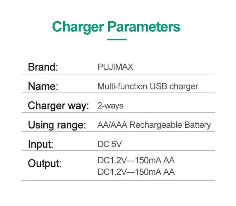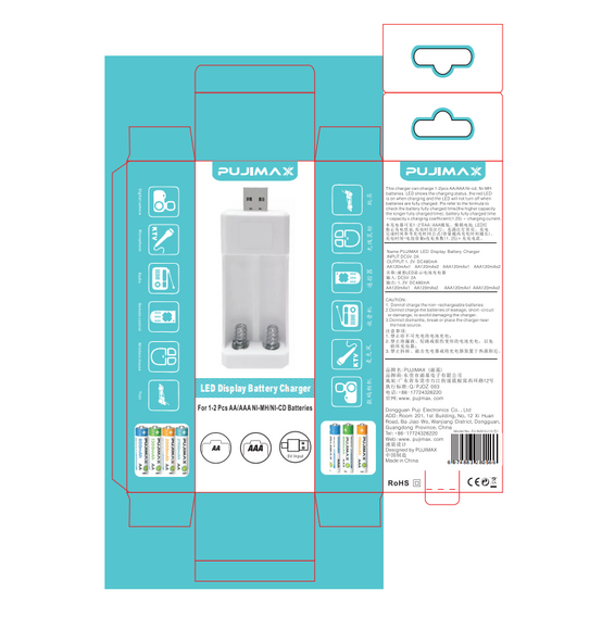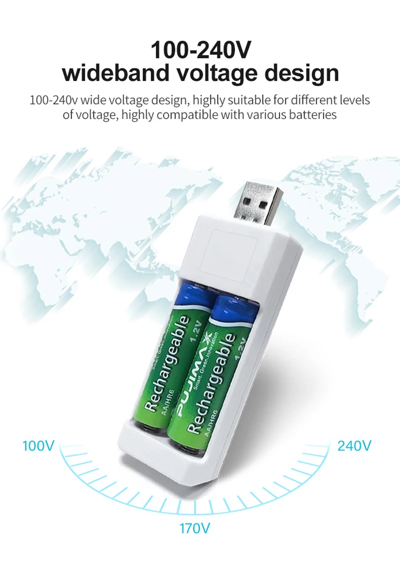 PUJIMAX wholesale 2 slots nimh nicd battery chargers 1.2v aa aaa battery charger portable usb rechargeable battery charger