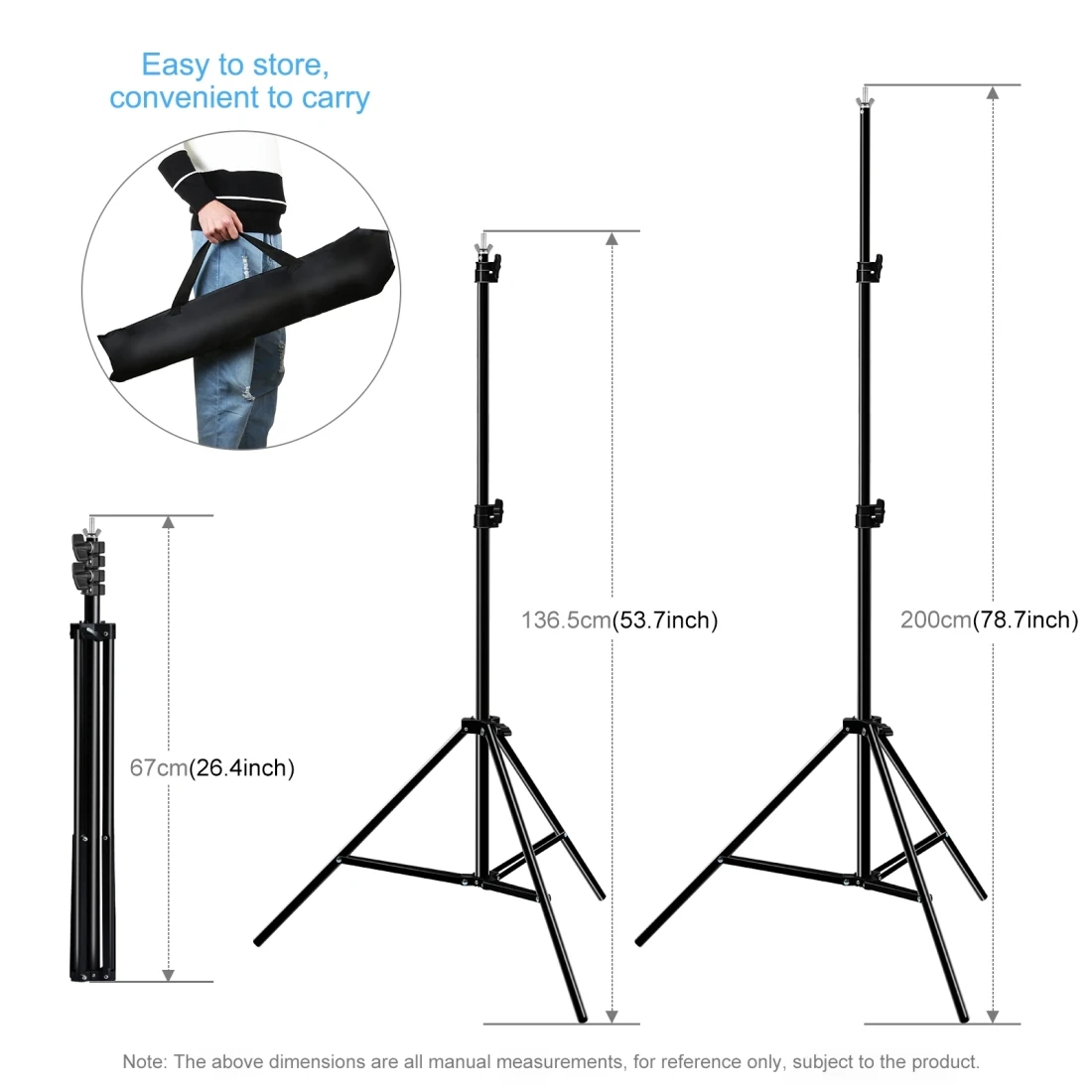 4. Detachable crossbars and foldable tripods, which can be easily packed a carrying bag for convenient transportation.