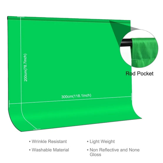 PULUZ 3m x 2m Photography Backdrop Background Green Folding Video Green Screen Cloth Backgrounds