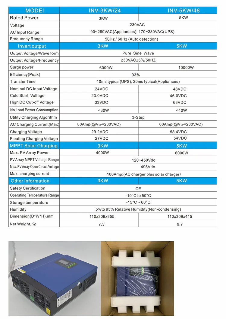 48VDC -230VAC 5000w Hybrid solar inverter with MPPT which with Max. charging current 100A